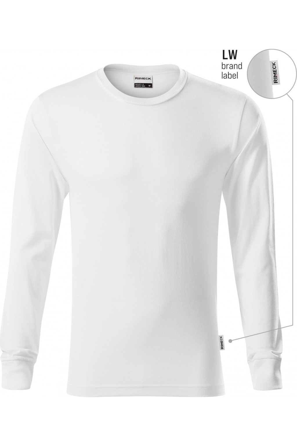 předsrážená bavlna odolná vyšším teplotám, pratelné na 95 °C (bílé) a 60 °C (barevné), střih s bočními švy, průkrčník lemován žebrovým úpletem 1:1, zpevnění ramenních švů páskou, dlouhé rukávy s manžetou, manžeta z žebrového úpletu 1:1, Produkt je dostupný ve dvou variantách: s/bez brand labelu v bočním švu (viz přehled barev). Varianta s brand labelem pouze do vyprodání zásob.