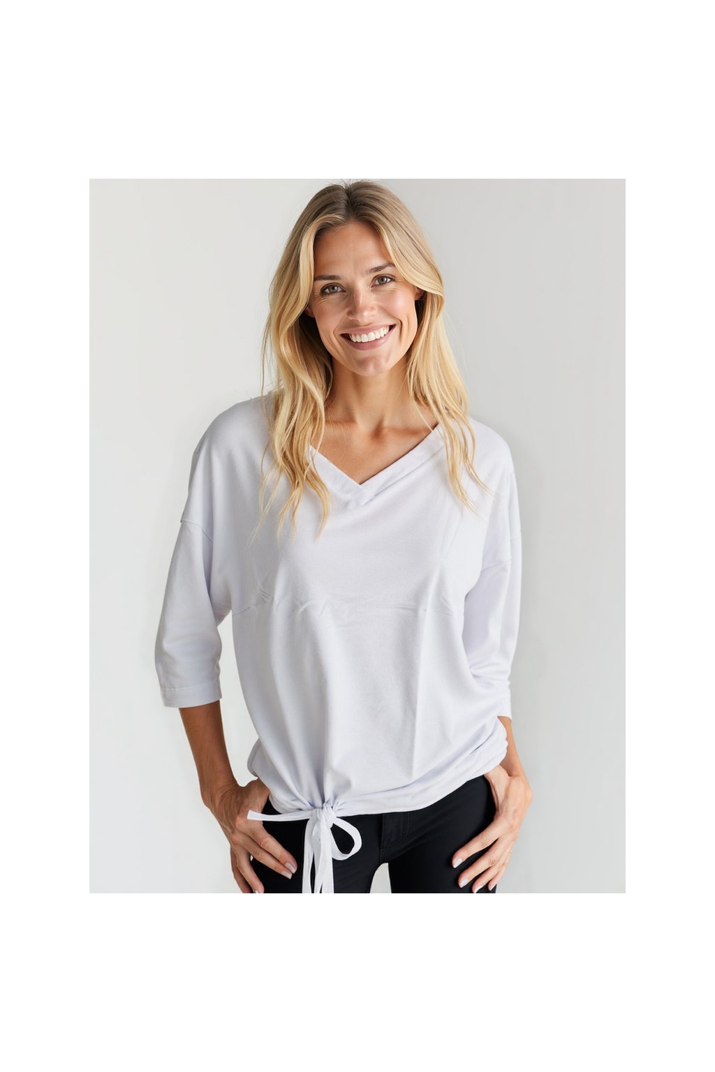 Velmi příjemná dámská halenka s 3/4 rukávem a efektně zakončeným spodním lemem se šnůrkou.