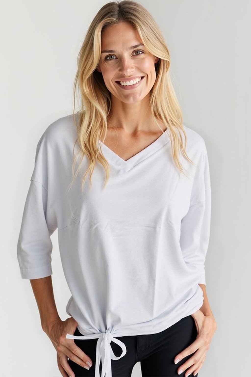 Velmi příjemná dámská halenka s 3/4 rukávem a efektně zakončeným spodním lemem se šnůrkou.