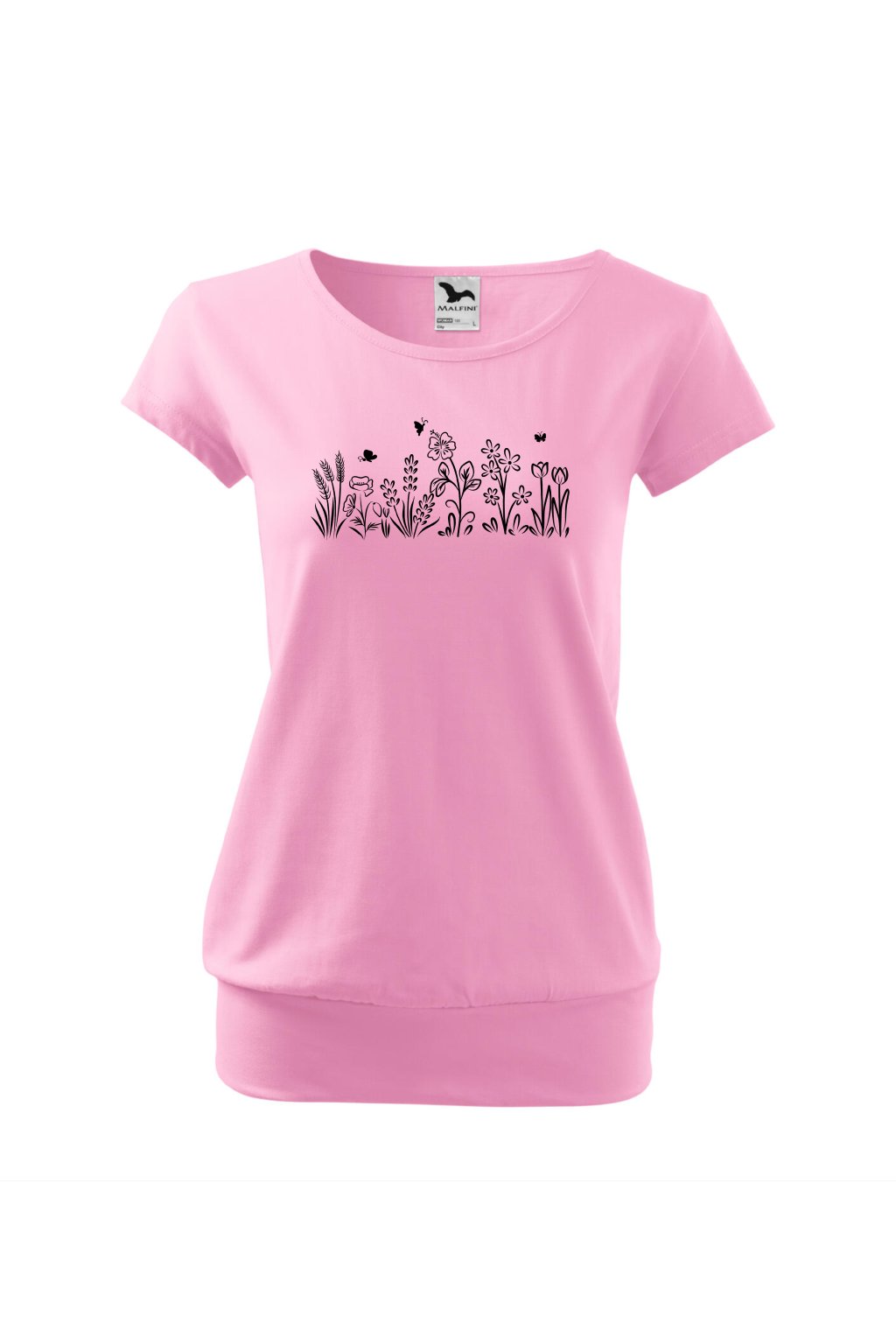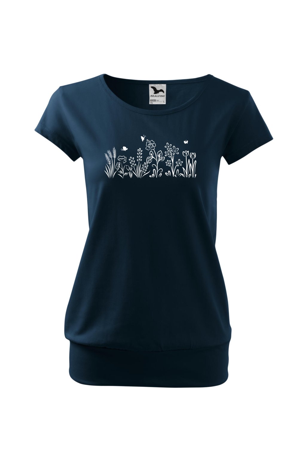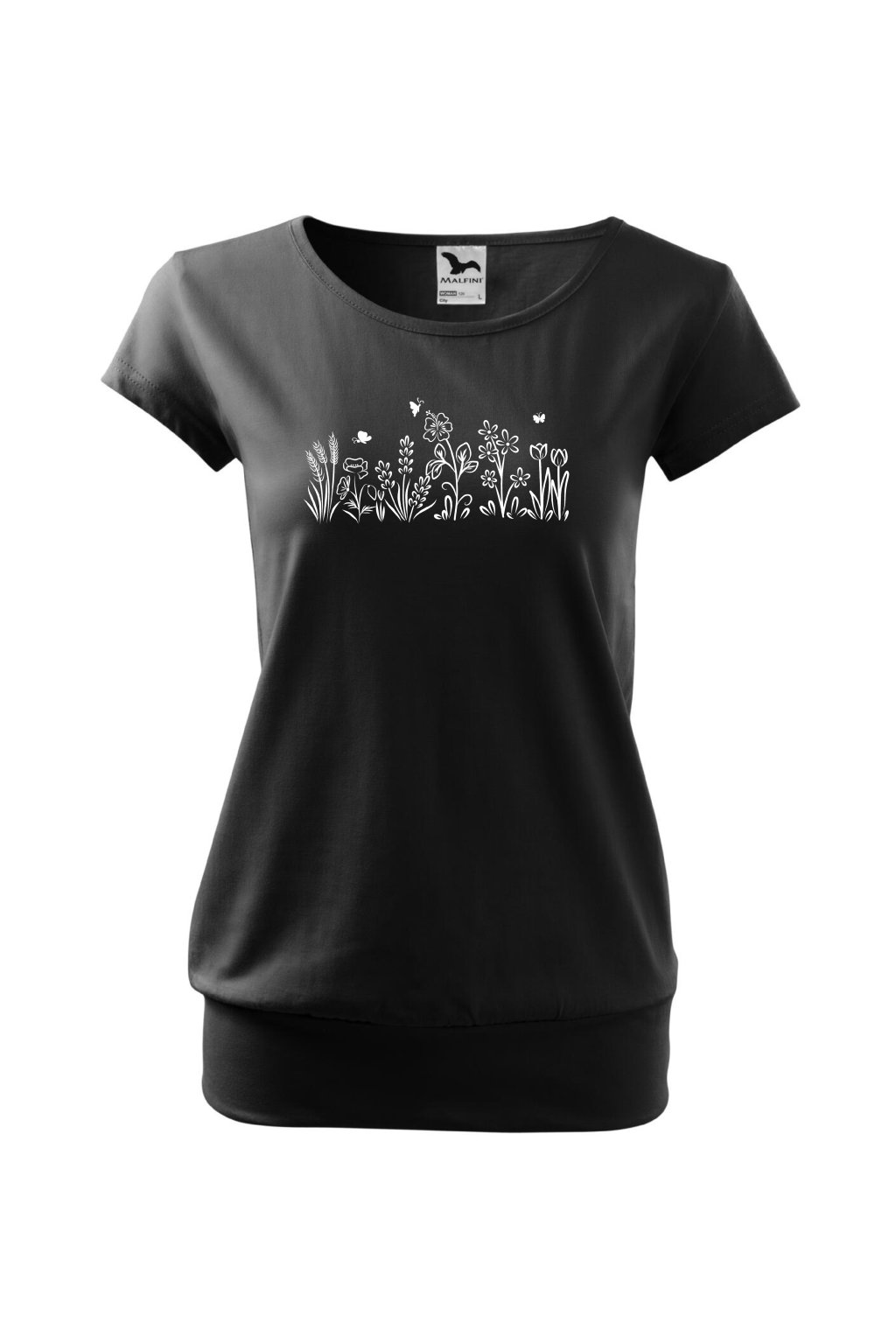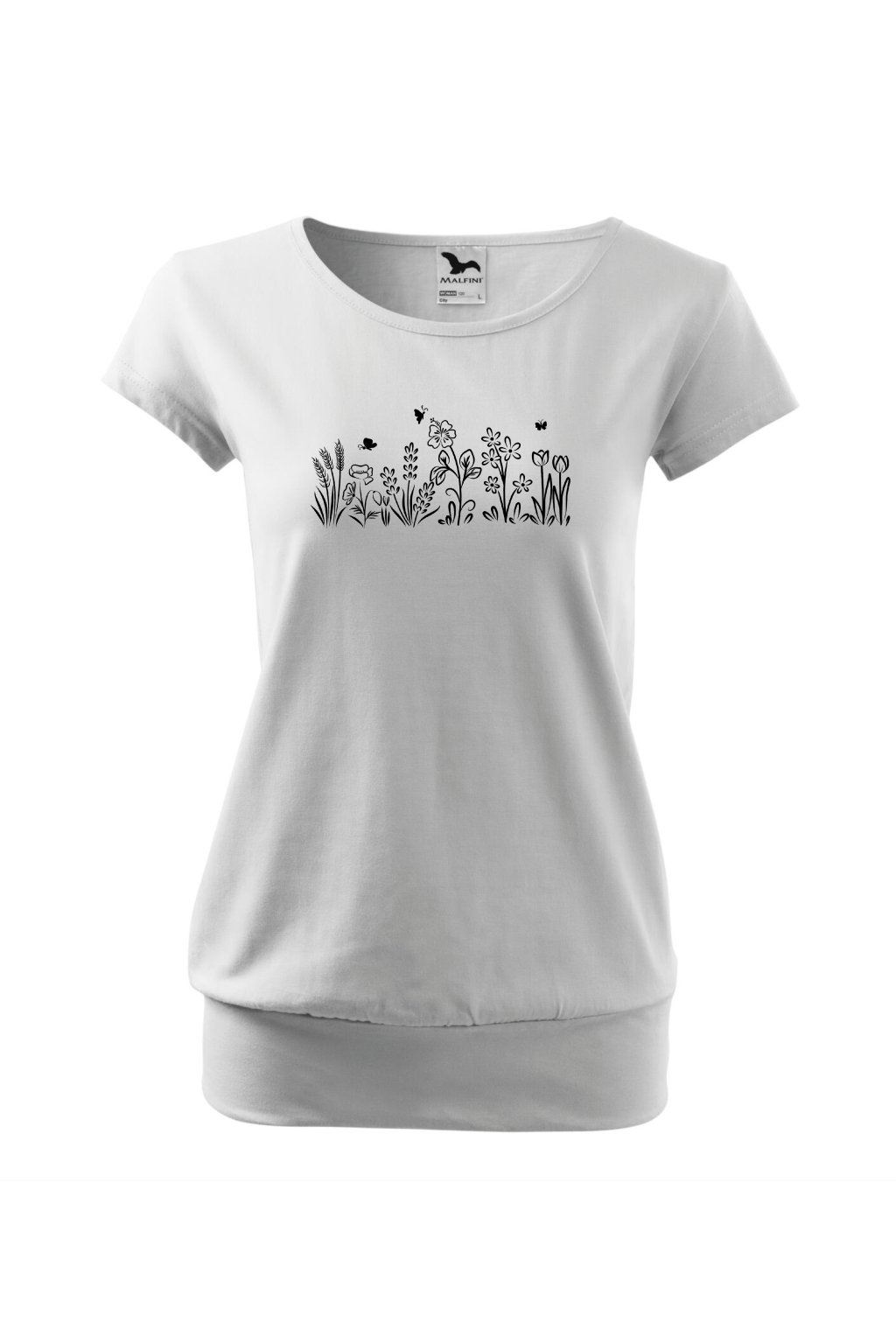 Tričko City s potiskem - bílé a černé kytky