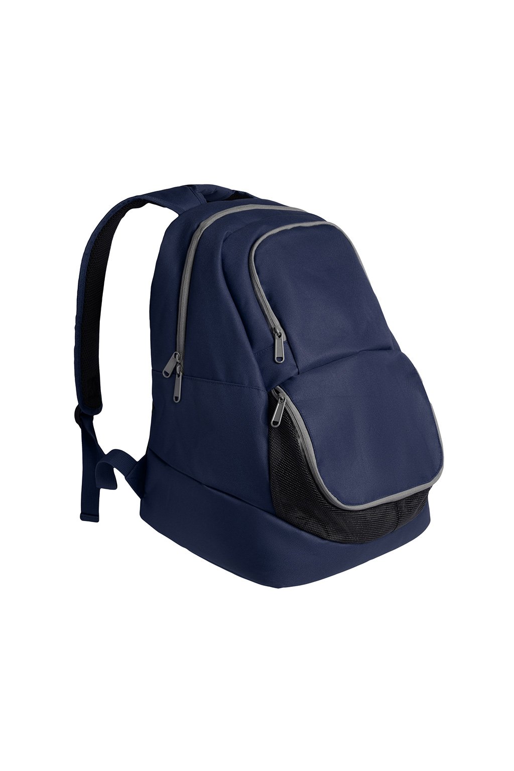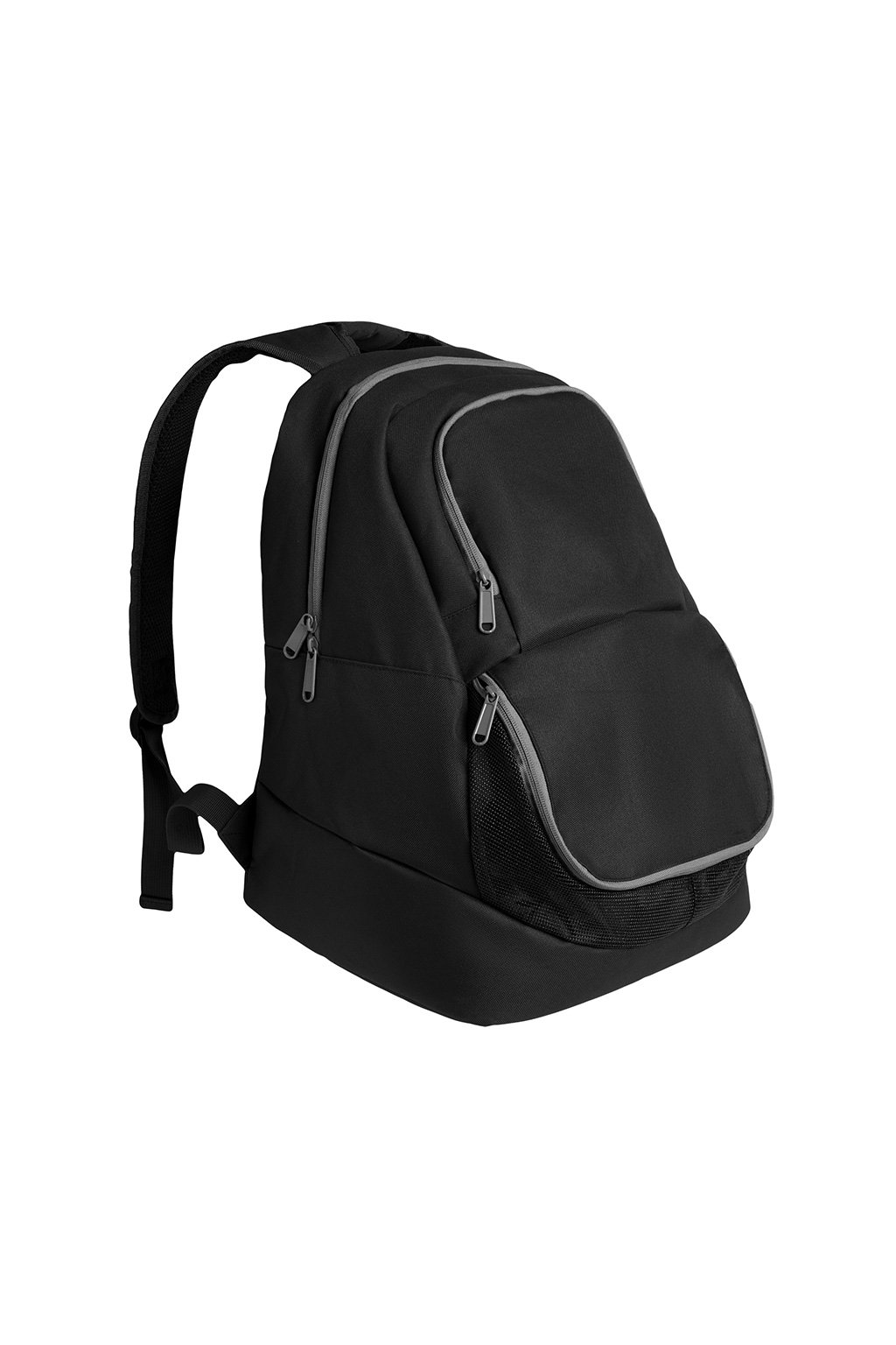 Sportovní batoh ergonomického designu, snadno přizpůsobitelný. Batoh má dvojité zesílené ramenní popruhy, jedno madlo, prošívaná záda a přední přihrádku na boty. Disponuje jednou hlavní kapsou a menší vnější přední kapsou. Batoh má kontrastní zipy v šedé barvě a detaily v černé barvě.