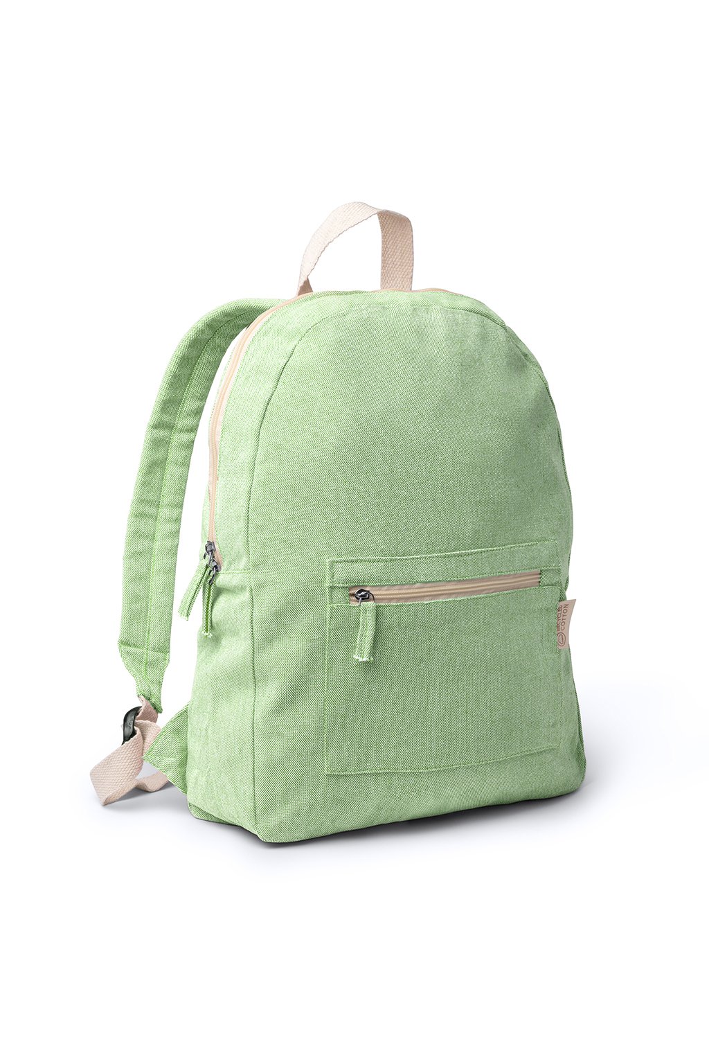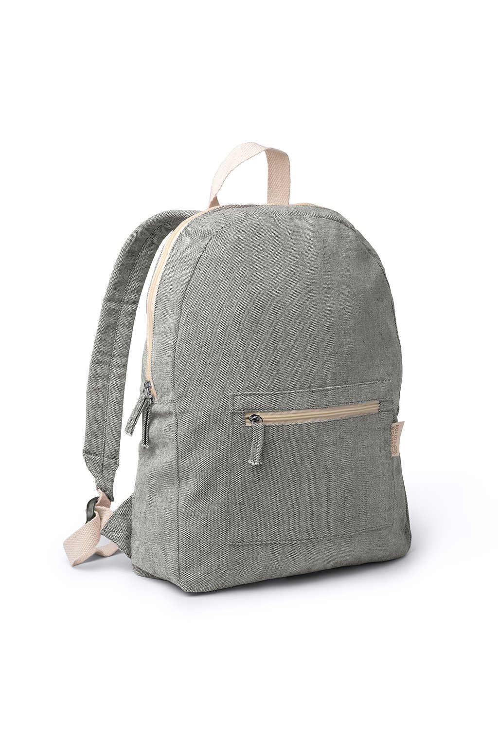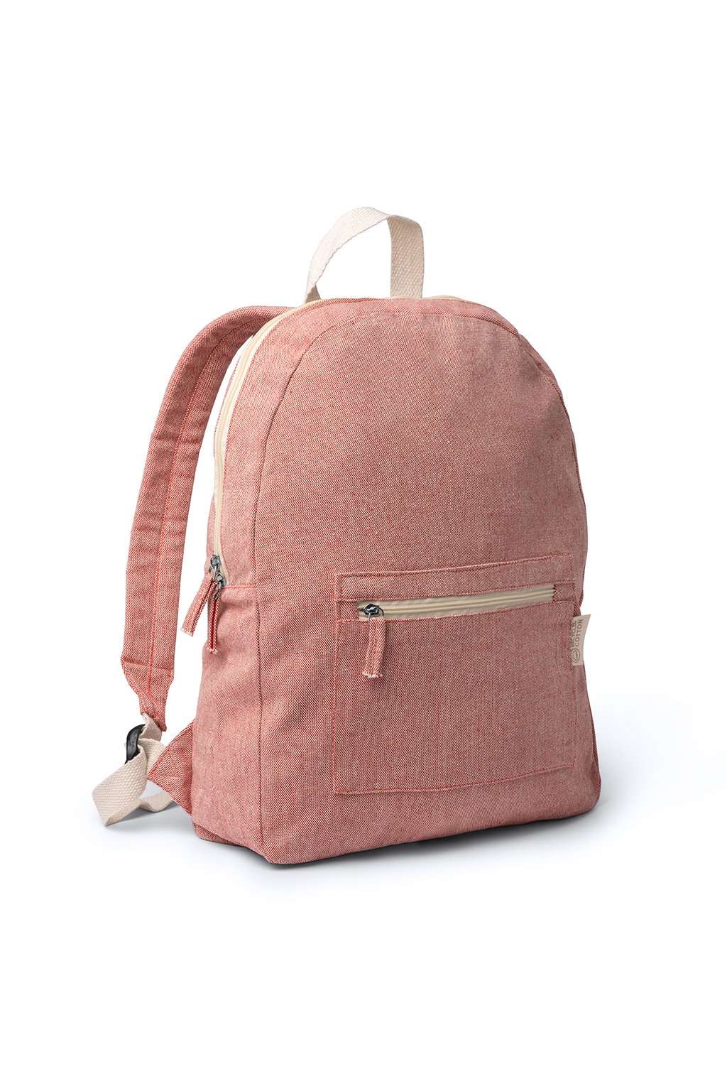 Batoh vyrobený z recyklované bavlny o gramáži 320 g/m² v designu s vřesovou úpravou. Přední kapsa a polstrované ramenní popruhy.