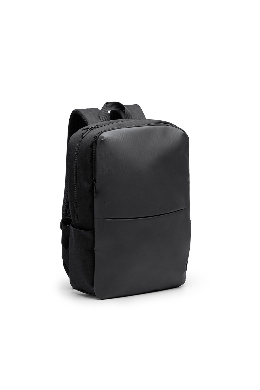 Batoh z PU kůže a RPET polyesteru 600D. Hlavní přihrádka s vnitřní polstrovanou kapsou na 15" notebook. Přední kapsa. Polstrovaná záda a ramenní popruhy.