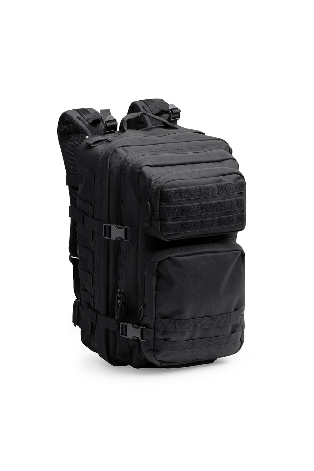 Batoh ve sportovním stylu vyrobený z odolného polyesteru 600D. Polstrovaná záda a ramena. Široká škála předních a vnitřních kapes. Plně otevíratelná hlavní přihrádka s dvojitým taháčkem na zip a 3 vnitřní kapsy. Přední část na suchý zip. Boční nastavovací prvky. Kapsa proti krádeži v zadní části. Velká kapacita 45 l. Kompletní batoh pro jakoukoli aktivitu.