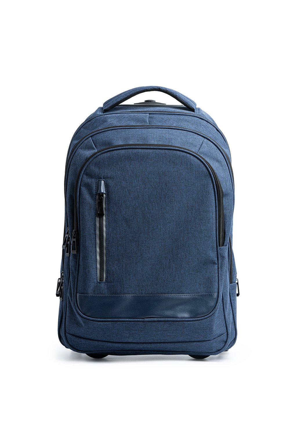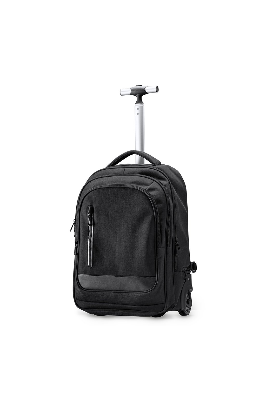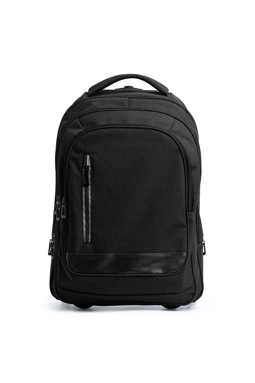 Batoh na kolečkách vyrobený z vřesového polyesteru 300D. Hlavní prostorná kapsa s vnitřní polstrovanou přihrádkou, ideální pro notebooky do velikosti 15". Dvě kapsy s vnitřními přihrádkami a přední kapsa. Vysoce kvalitní a odolný skelet. Nastavitelné polstrované ramenní popruhy. Kryty koleček odolné proti ušpinění.