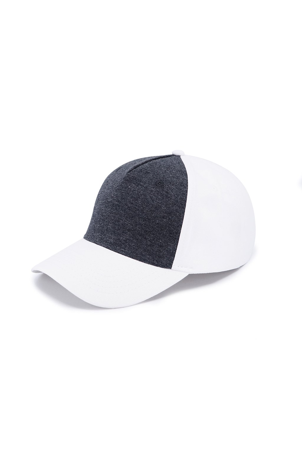 Pětipanelová čepice s předním panelem z látky s melírovým efektem. Bavlněný potící pásek, obšité větrací otvory a zapínání na kovovou sponu.