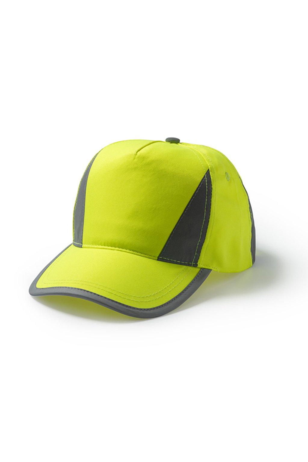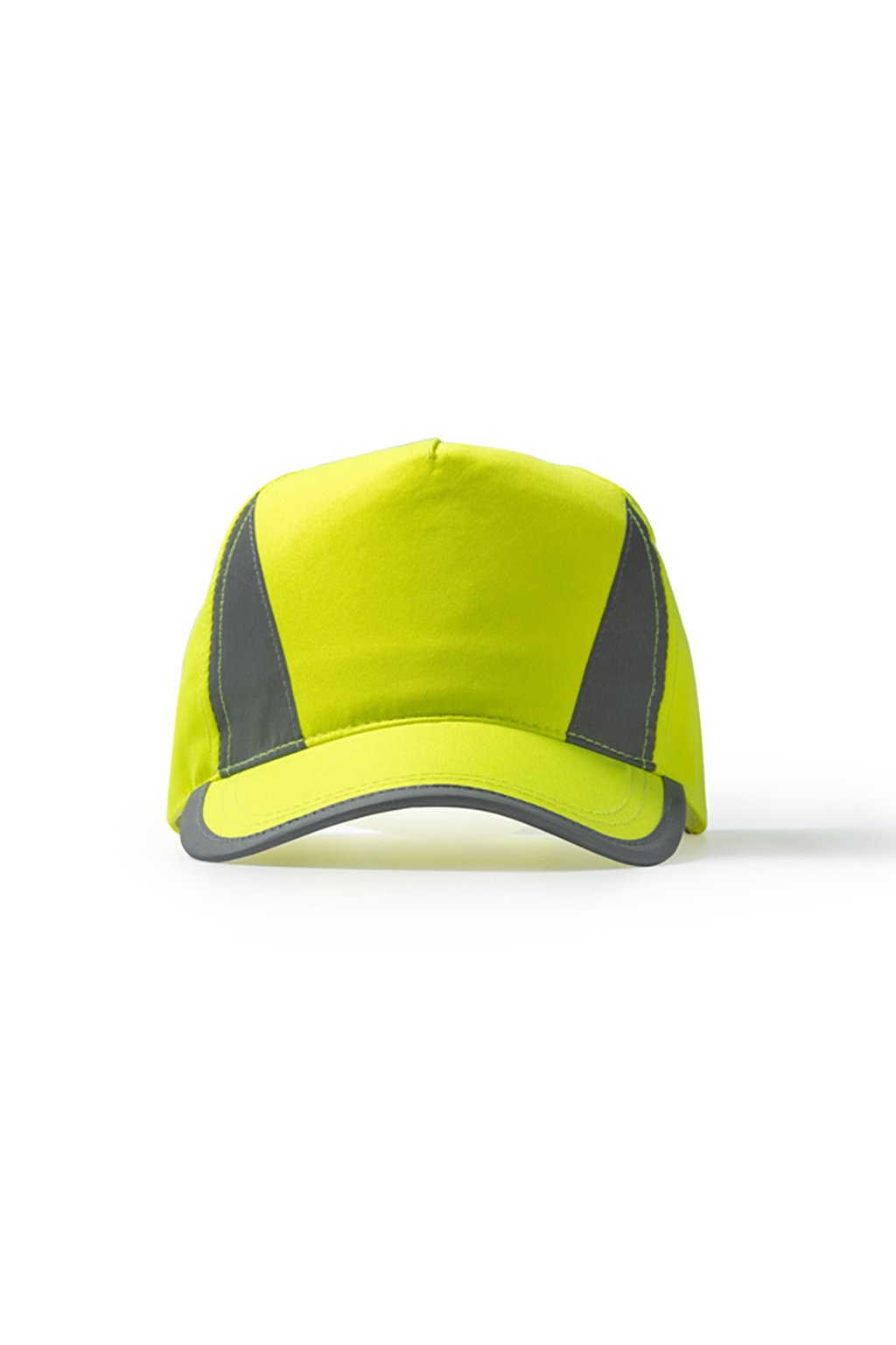 Pětipanelová čepice ze 100% polyesteru s detaily s vysokou viditelností. Nastavitelné zapínání na suchý zip a větrací očka. Odnímatelný štítek.