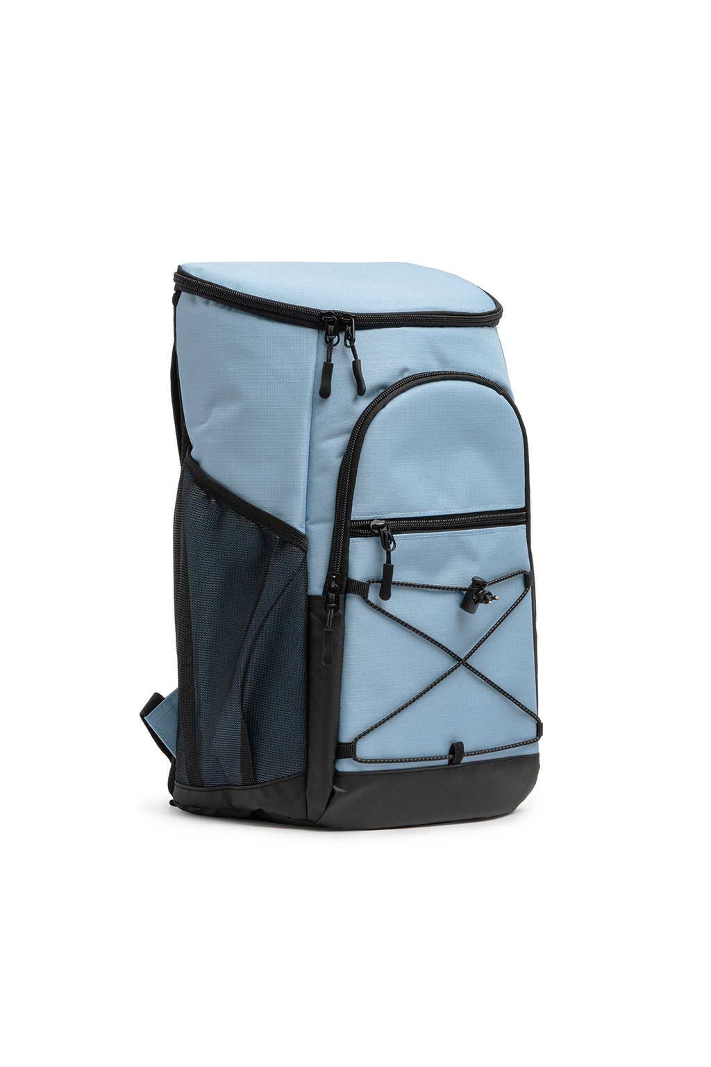 Chladicí batoh z ripstop polyesteru 210D. Izotermická podšívka v hlavní a přední kapse. Přední přihrádka na elastickou bungee šňůru a boční síťované kapsy. Objem 18 litrů. Polstrovaná záda a ramenní popruhy.
