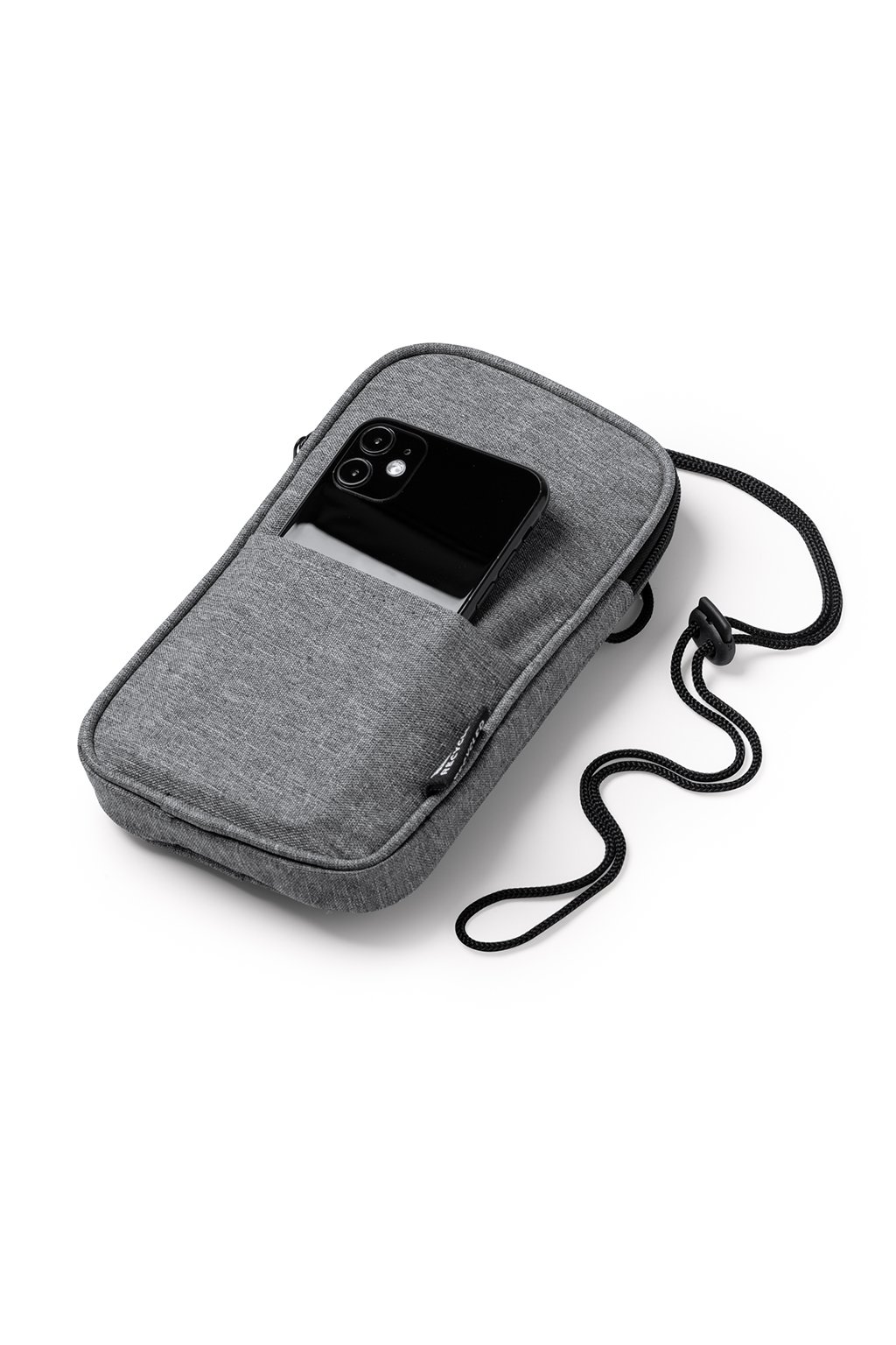 Pouzdro na mobil z RPET polyesteru. Hlavní přihrádka s odpovídajícím zapínáním na zip. Vnější kapsa. Součástí balení je odpovídající popruh na přenášení.