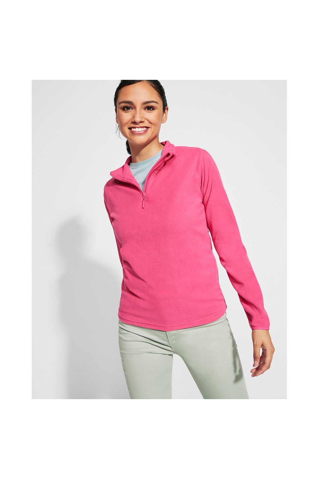 Dámská mikrofleecová mikina s krátkým zipem a manžetami z elastického materiálu.