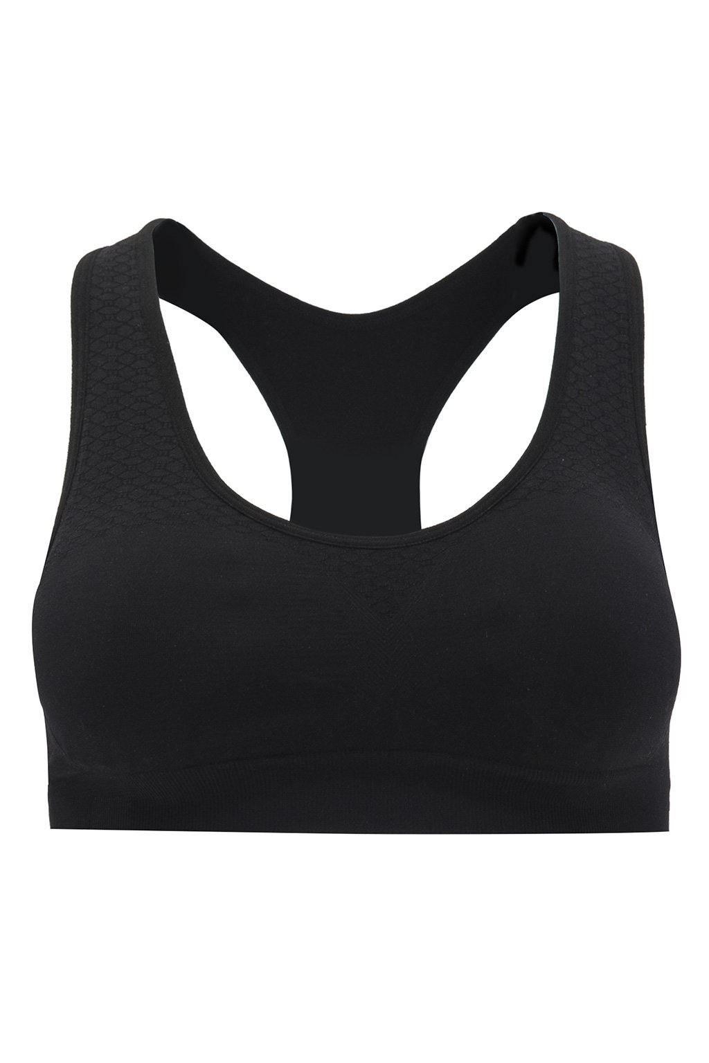 Sportovní podprsenka bez kostic s vykrojenými zády a bez zapínání. Podrsenka je rychleschnoucí a vhodná na sporty se středním stupněm aktivity. Materiál v černé barvě 90% nylon / 10% elastan.