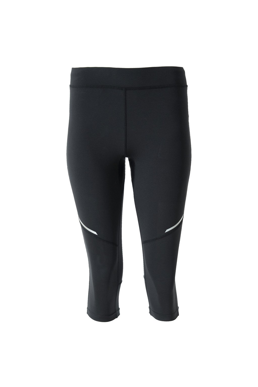 Dámské sportovní legíny do poloviny stehen. Elastický pas s vnitřní stahovací překříženou šňůrkou pro snadnější upevnění. Reflexní detaily. Vnější kapsa na zip na zadní straně.