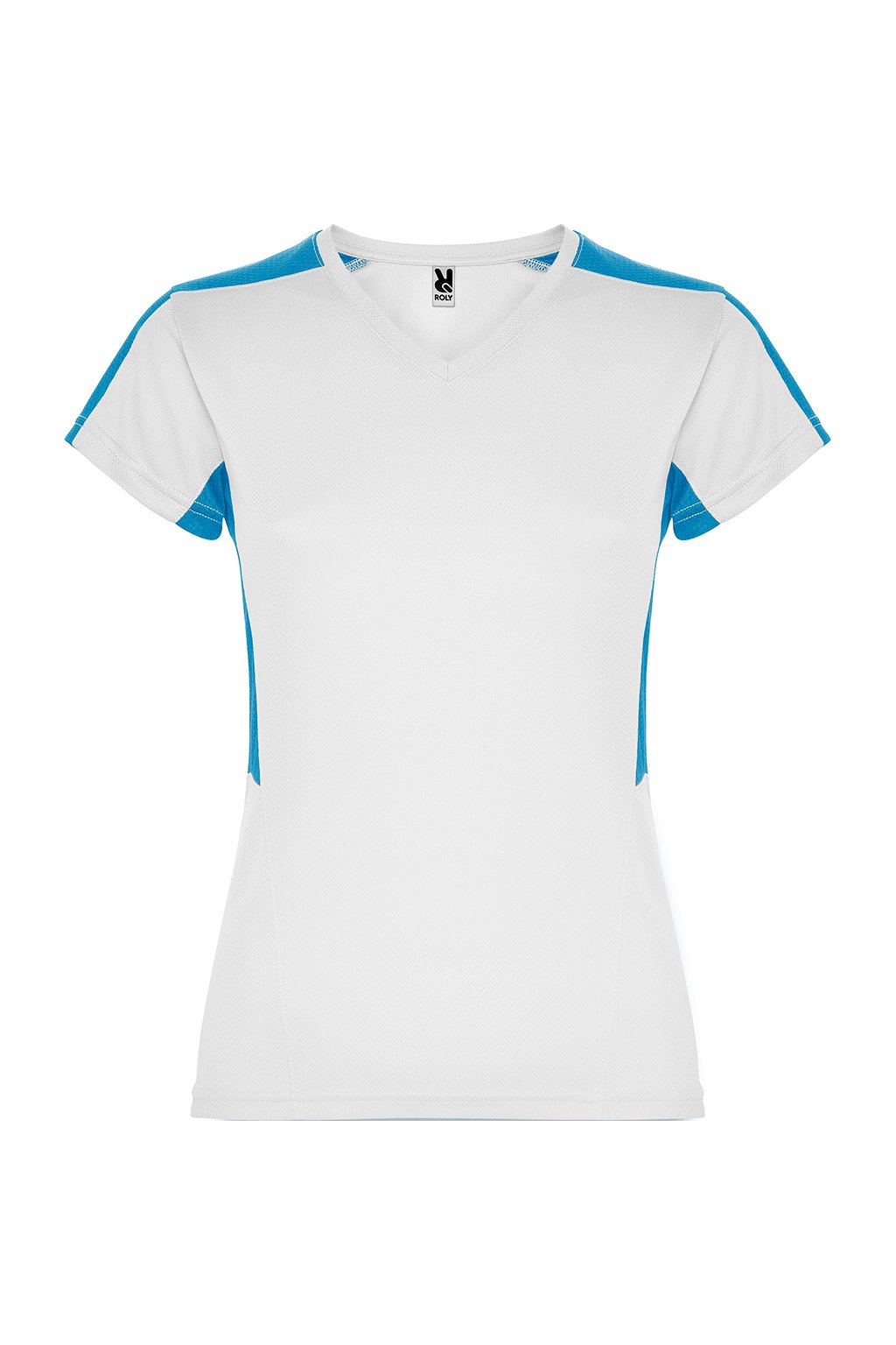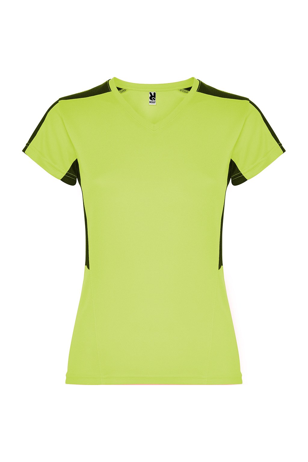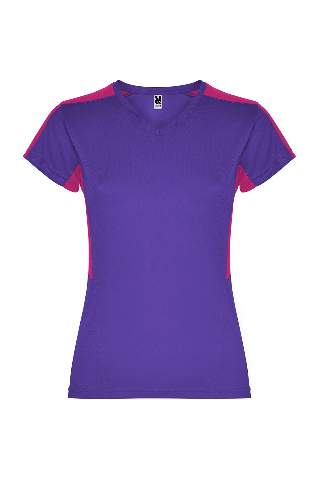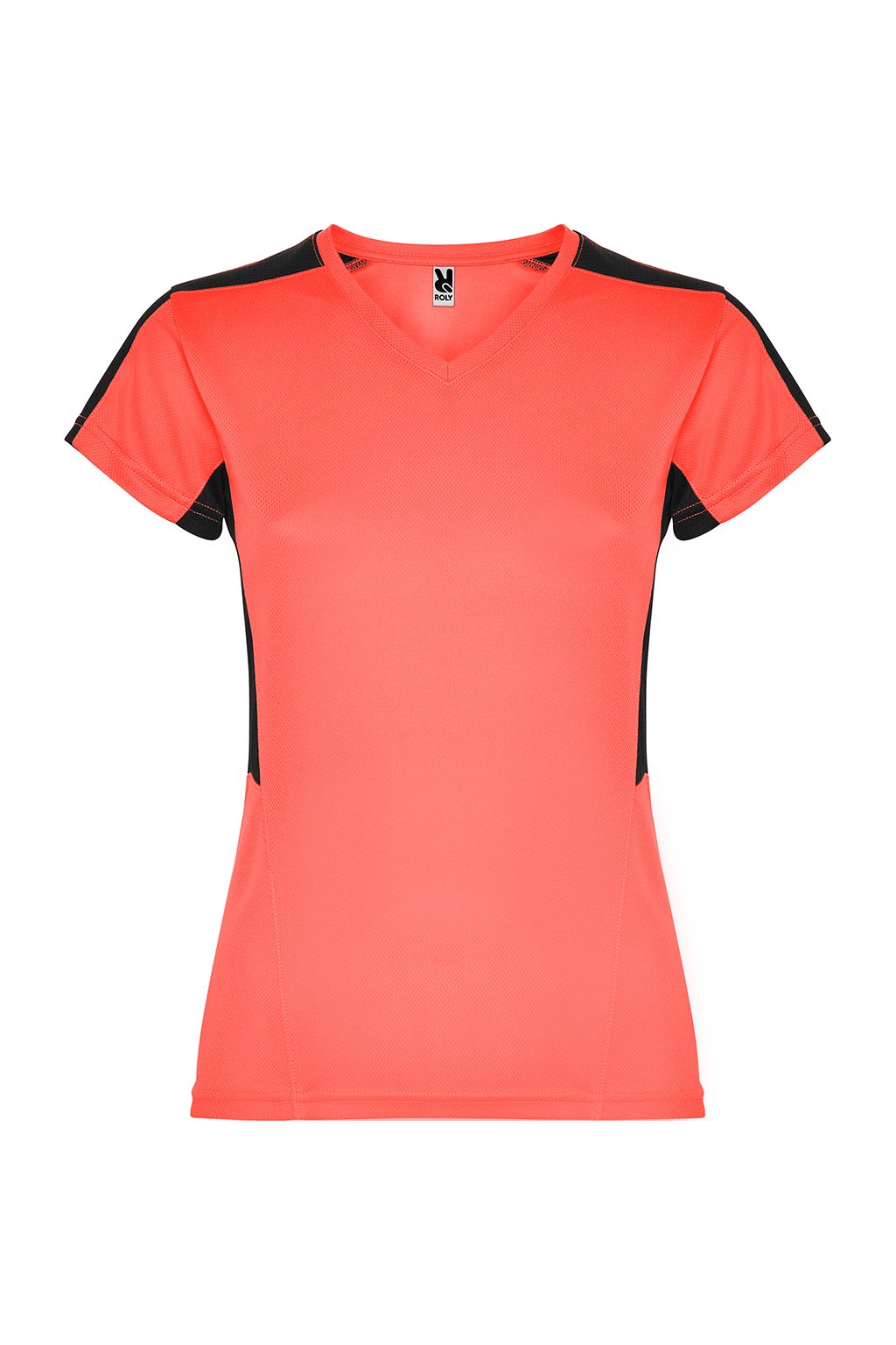 Dámské funkční triko s krátkým rukávem a výstřihem do V. Kombinace dvou polyesterových tkanin. Hlavní materiál polyester honeycomb a polyester 3D mřížky na ramenou a bočních vsadkách. Materiál dobře absorbuje vlhkost.