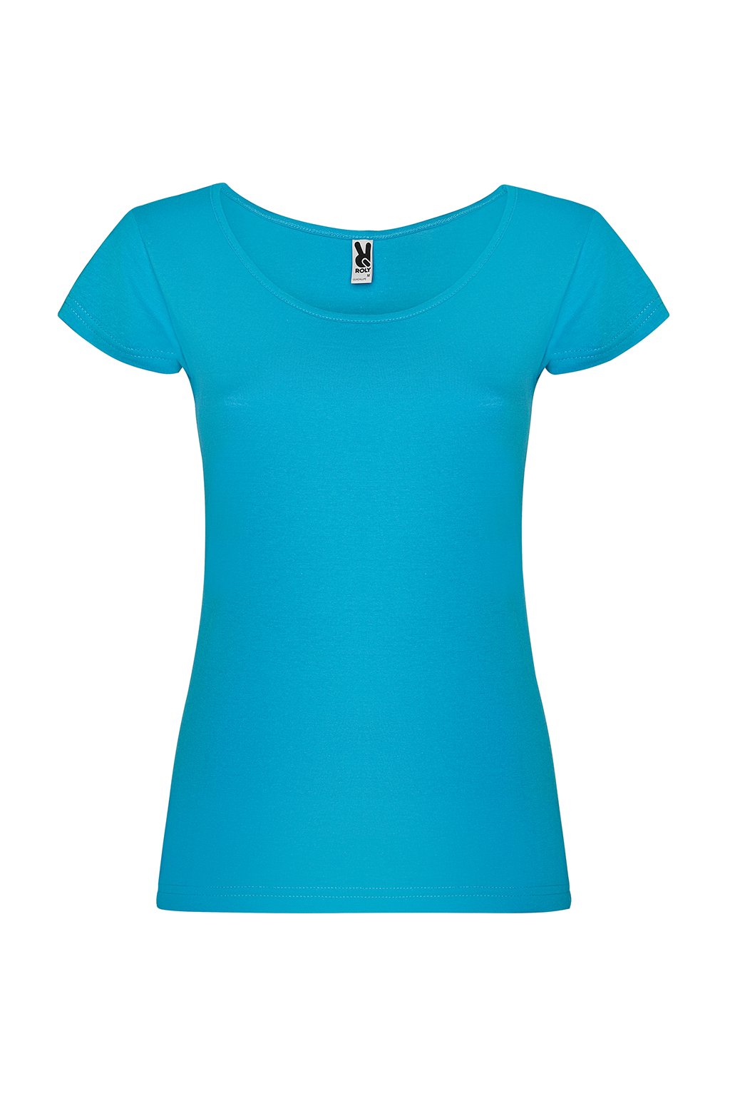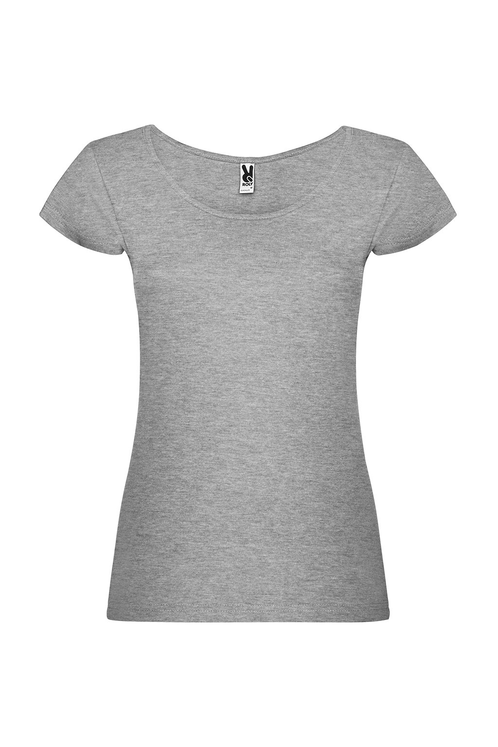Dámské triko s krátkým rukávem a hlubokým kulatým průkrčníkem. Boční švy. Vypasovaný střih. Barva 58 (melange) - složení 85% bavlna/15% polyester