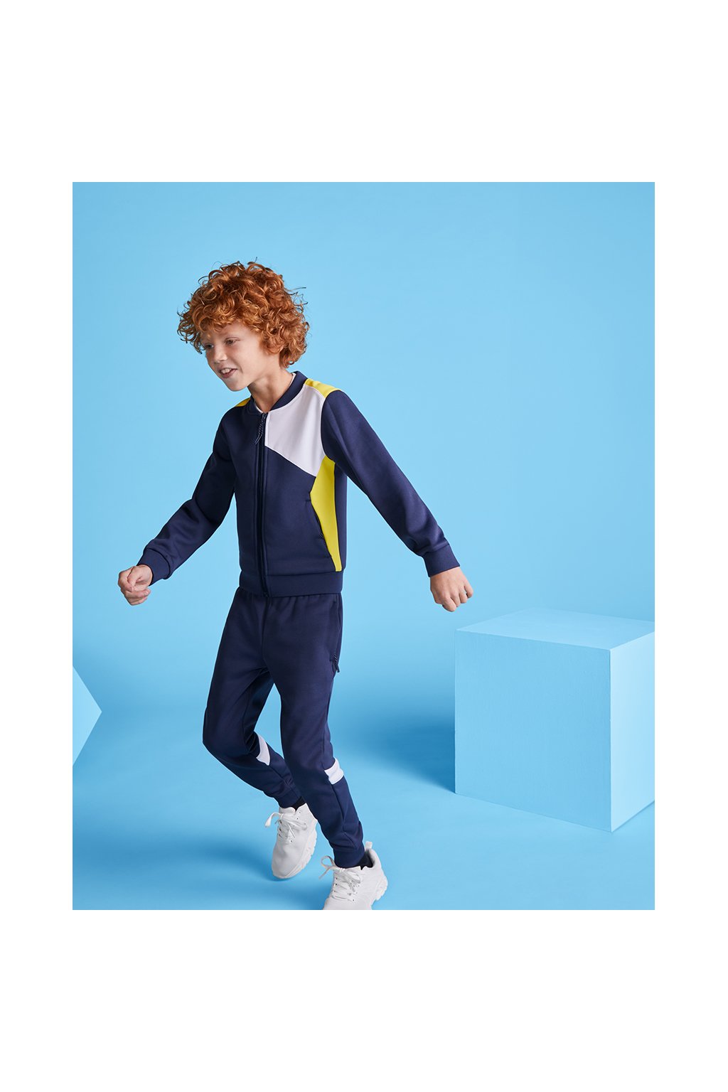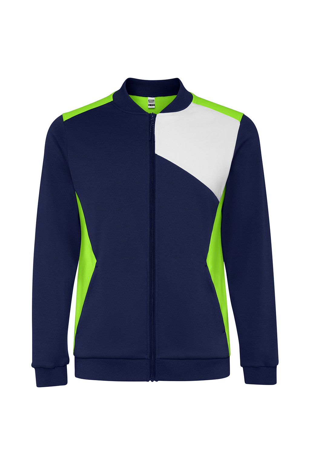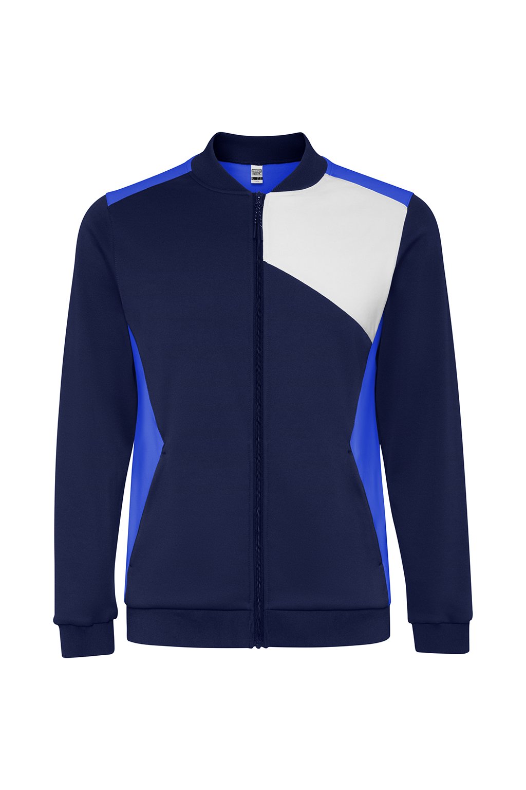Sportovní bunda s předním zapínáním na zip. Boční kapsy se zapínáním na zip. Límec, manžety a spodní lem s 1x1 žebrováním. Asymetrický hlavní prvek na levé straně hrudníku, speciálně navržený pro vyšívání. Lze kombinovat s kalhotami Rodas.