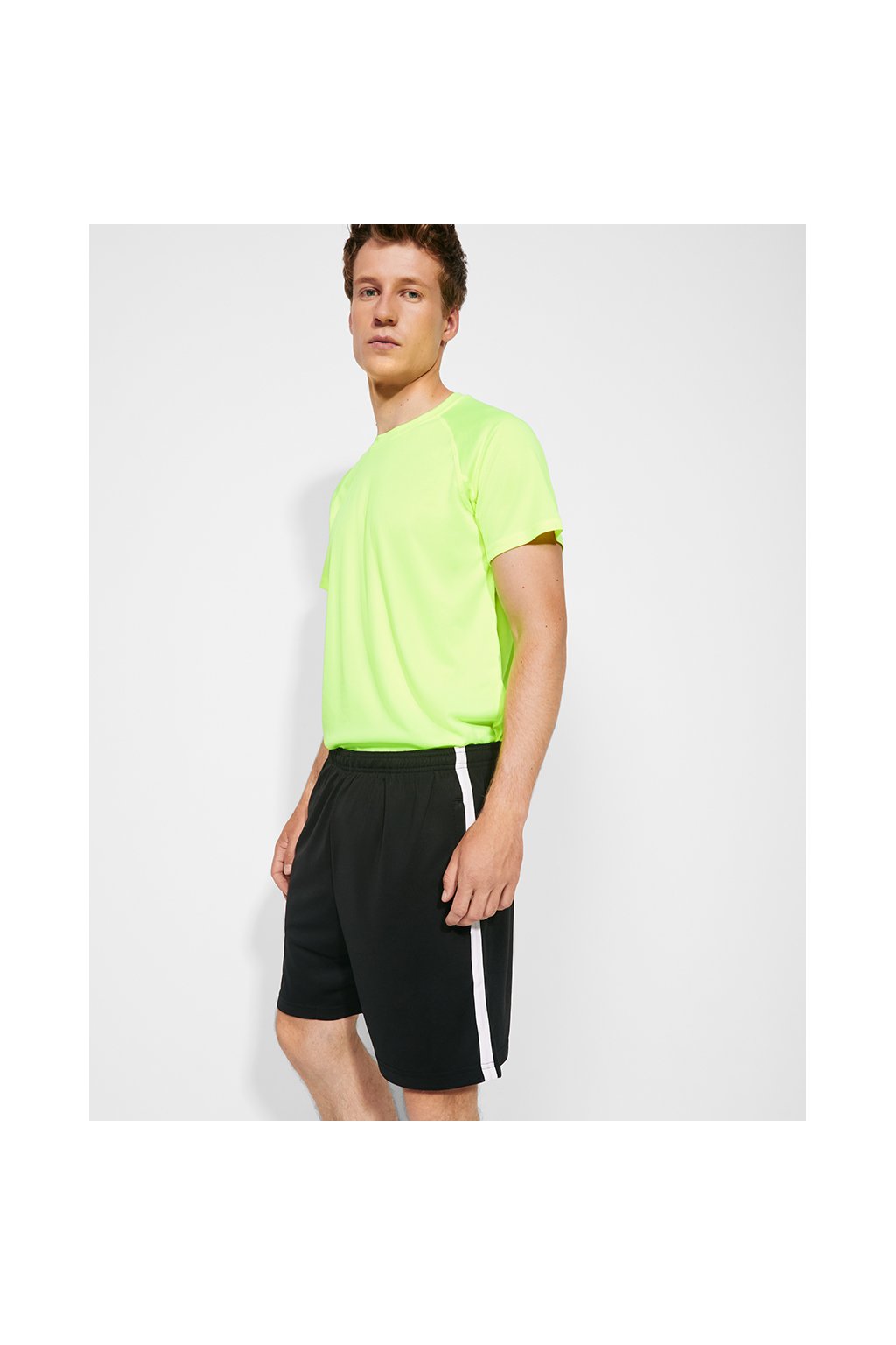 Dětské krátké sportovní bermudy. Postranní kapsy na zip. Elastický pas se stahovací vnitřní šňůrkou v kontrastní barvě. Kontrastní postranní pruh. Odnímatelný štítek. Funkční látka. Dostupné i v dospělých velikostech.