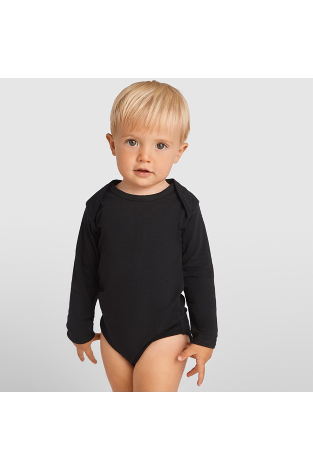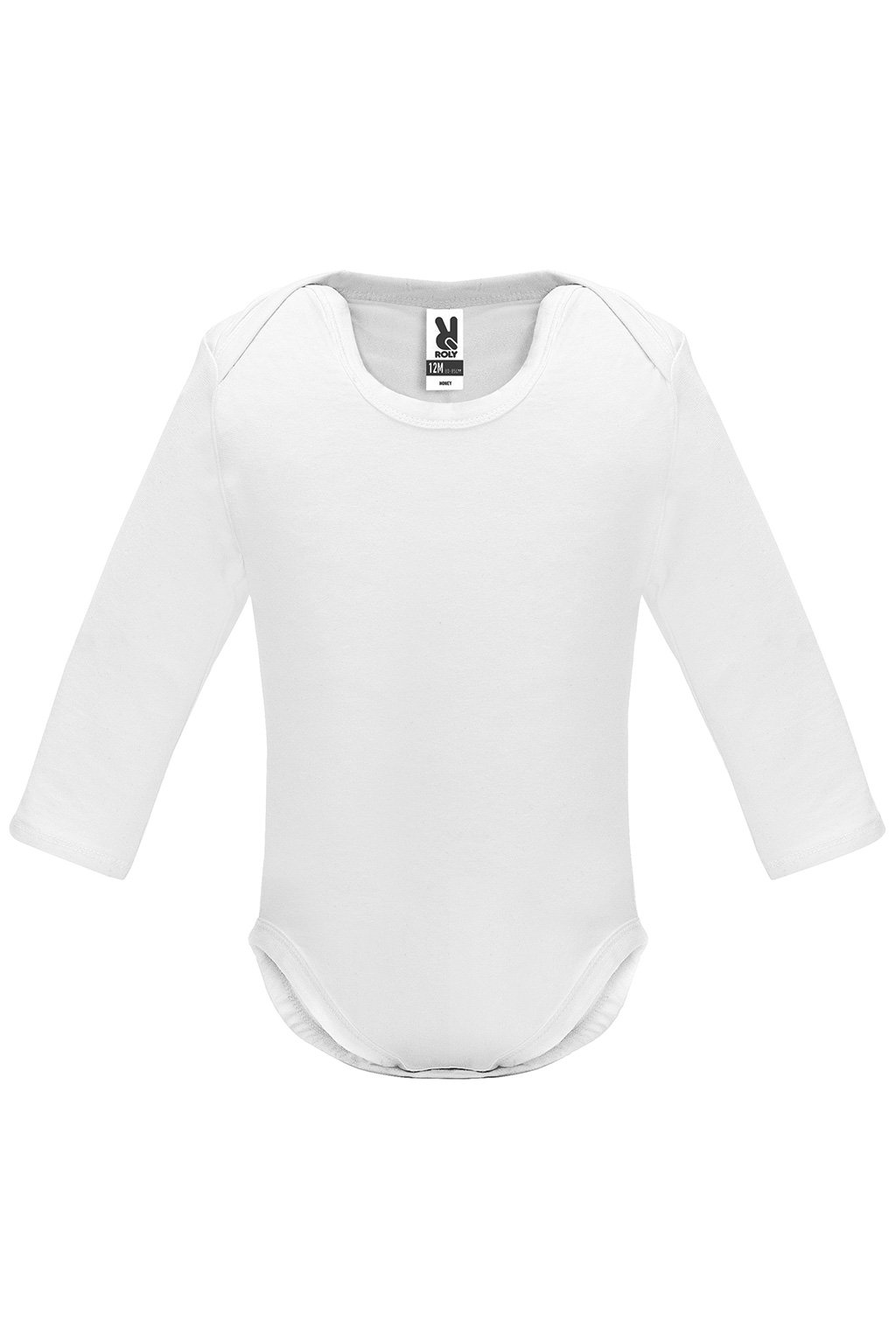 Kojenecké body s dlouhým rukávem. 1x1 žebrovaný průkrčník a spodní část. Zapínaní na cvočky v rozkroku. Na ramínkách překřížení pro snadné oblékání.