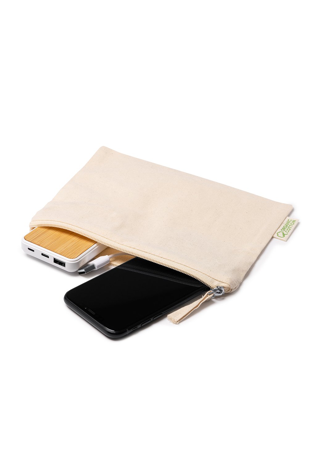 Toaletní taška ze 100% organické bavlny s odpovídajícím stahovacím páskem. 180 g/m².