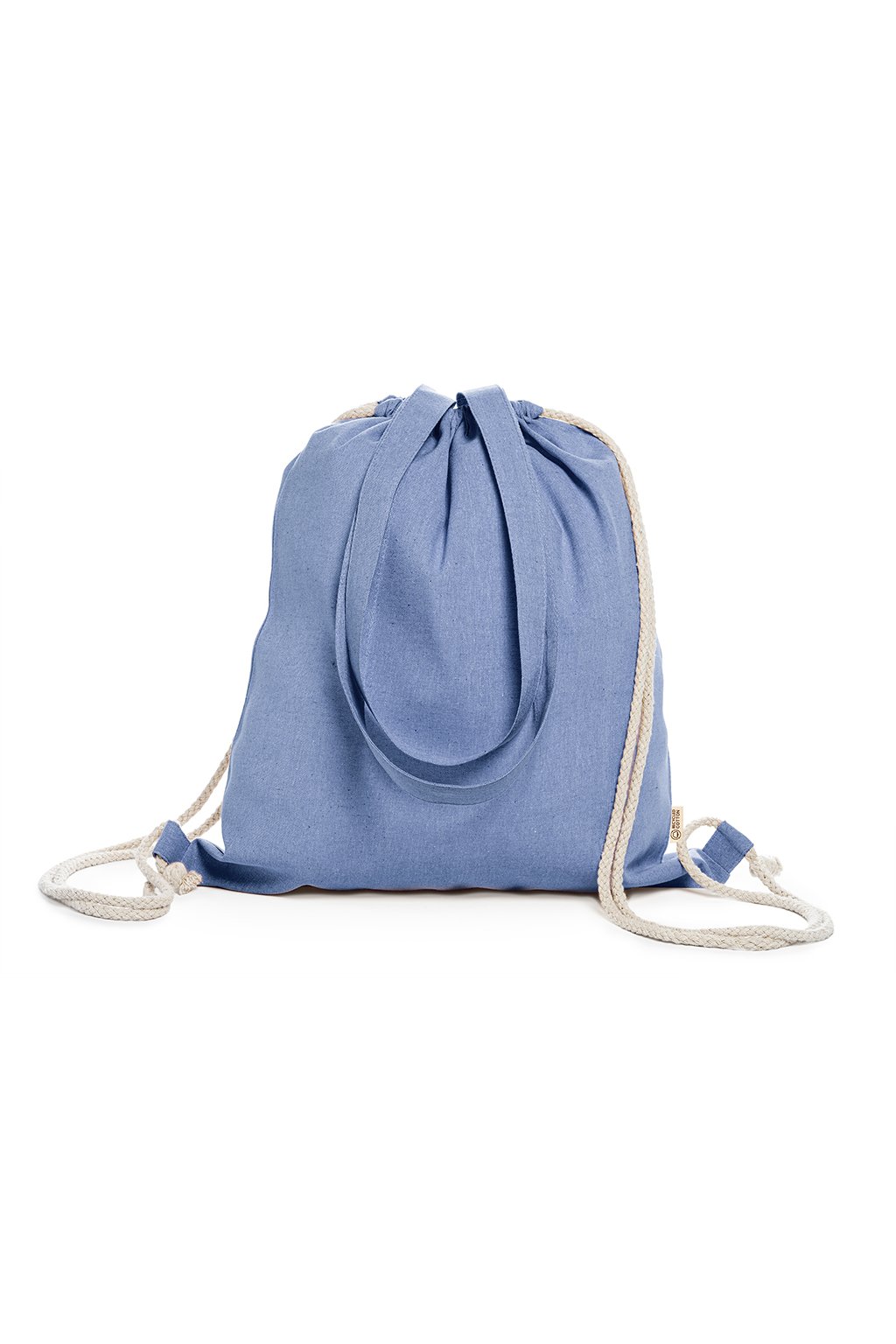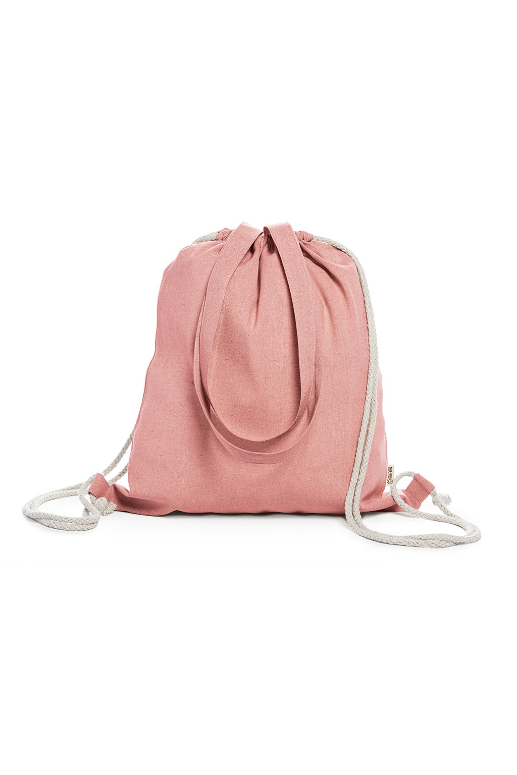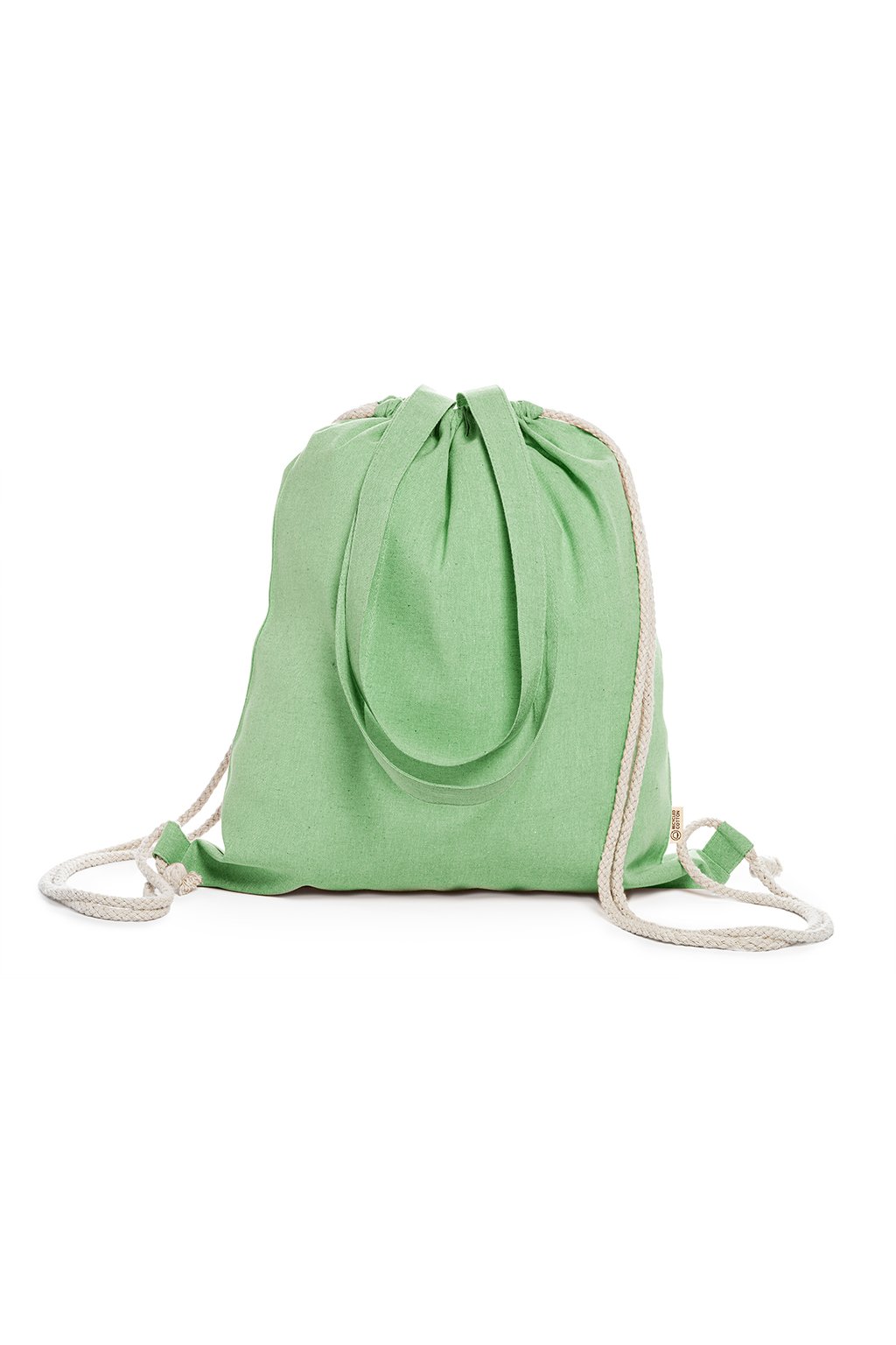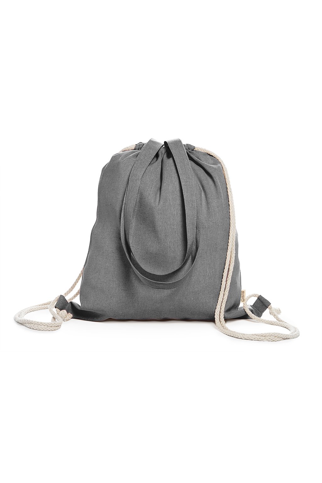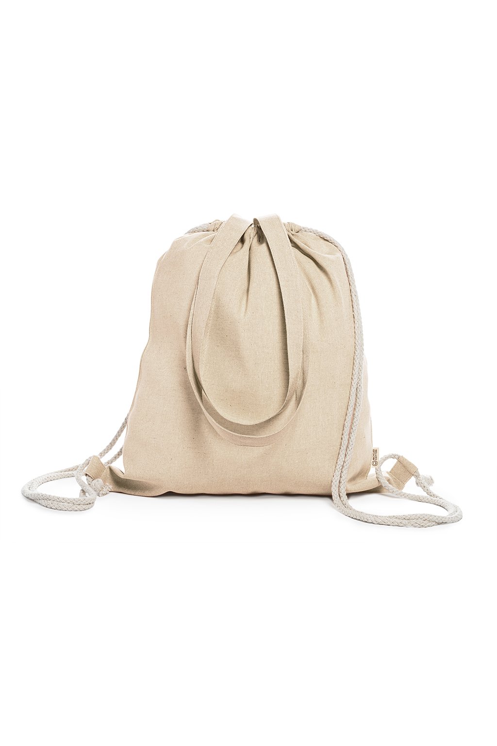 Sportovní batůžek se stahovacími šňůrkami ze 100% recyklované bavlny v kropenaté úpravě, se 70 cm dlouhými odpovídajícími uchy a šňůrkami v přírodní barvě. Gramáž 140 g/m².