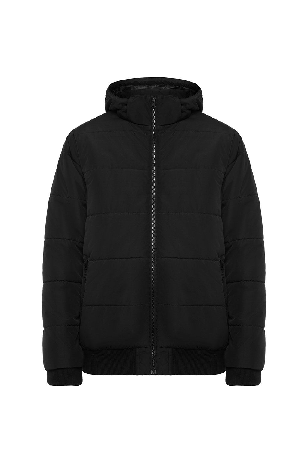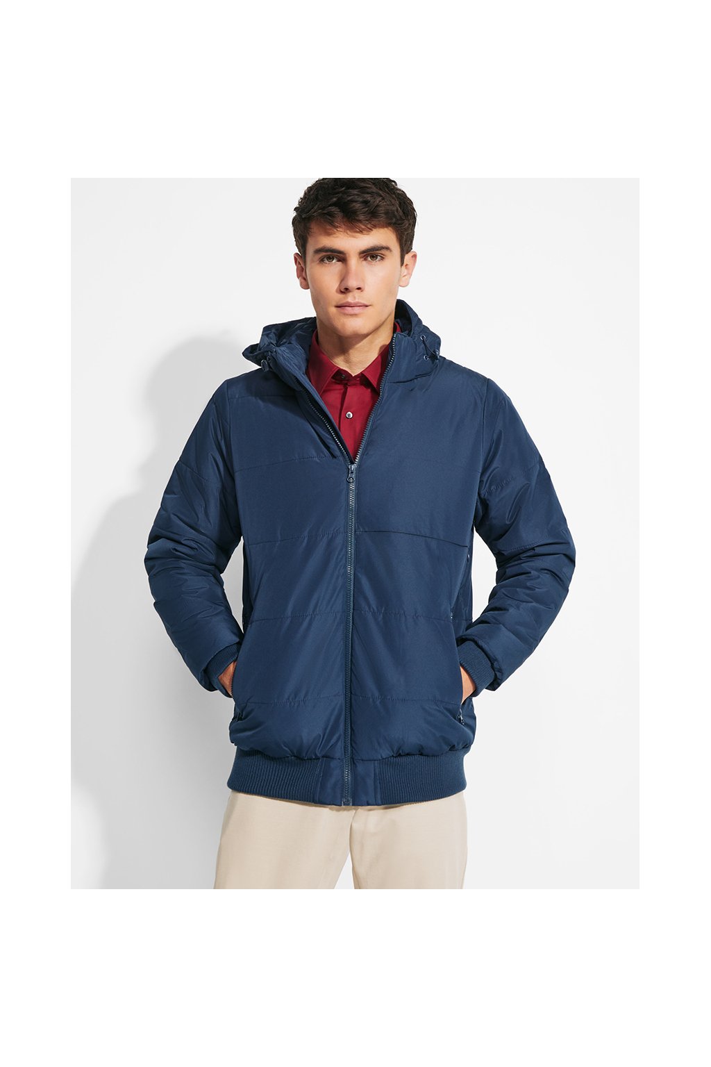 Voděodolná polstrovaná bunda s vysokým límce a kapucí se stahováním s možností složení. Bunda má přední zip s chráníčem brady a dvě boční kapsy na zip. 2x1 žebrovaná látka na manžetách a spodním lemu.