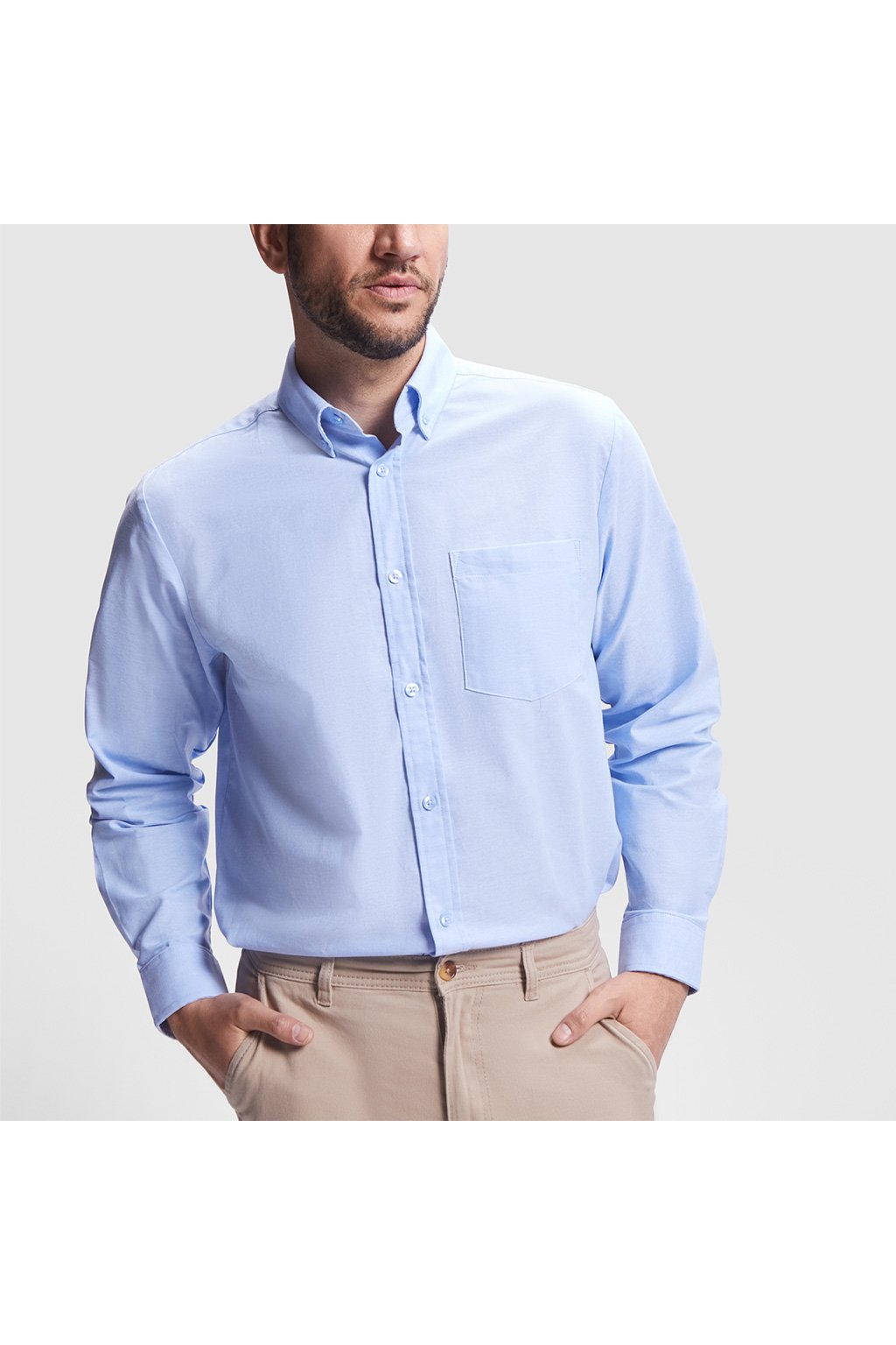 Pánská košile s levou náprsní kapsou. Zapínání na knoflíky. Button-down límeček. Záševky na manžetách a zadní části.