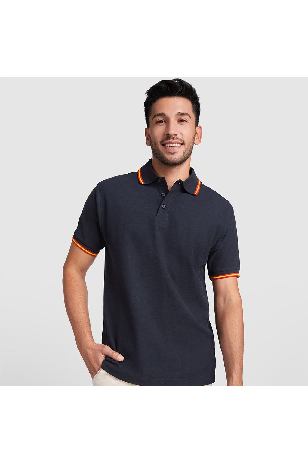 Polokošile s krátkým rukávem, límec a manžety v žakárovém úplete, 3 knoflíky. Zpevněné skryté švy na průkrčníku. Logo vlajky vyšité na zadní straně.