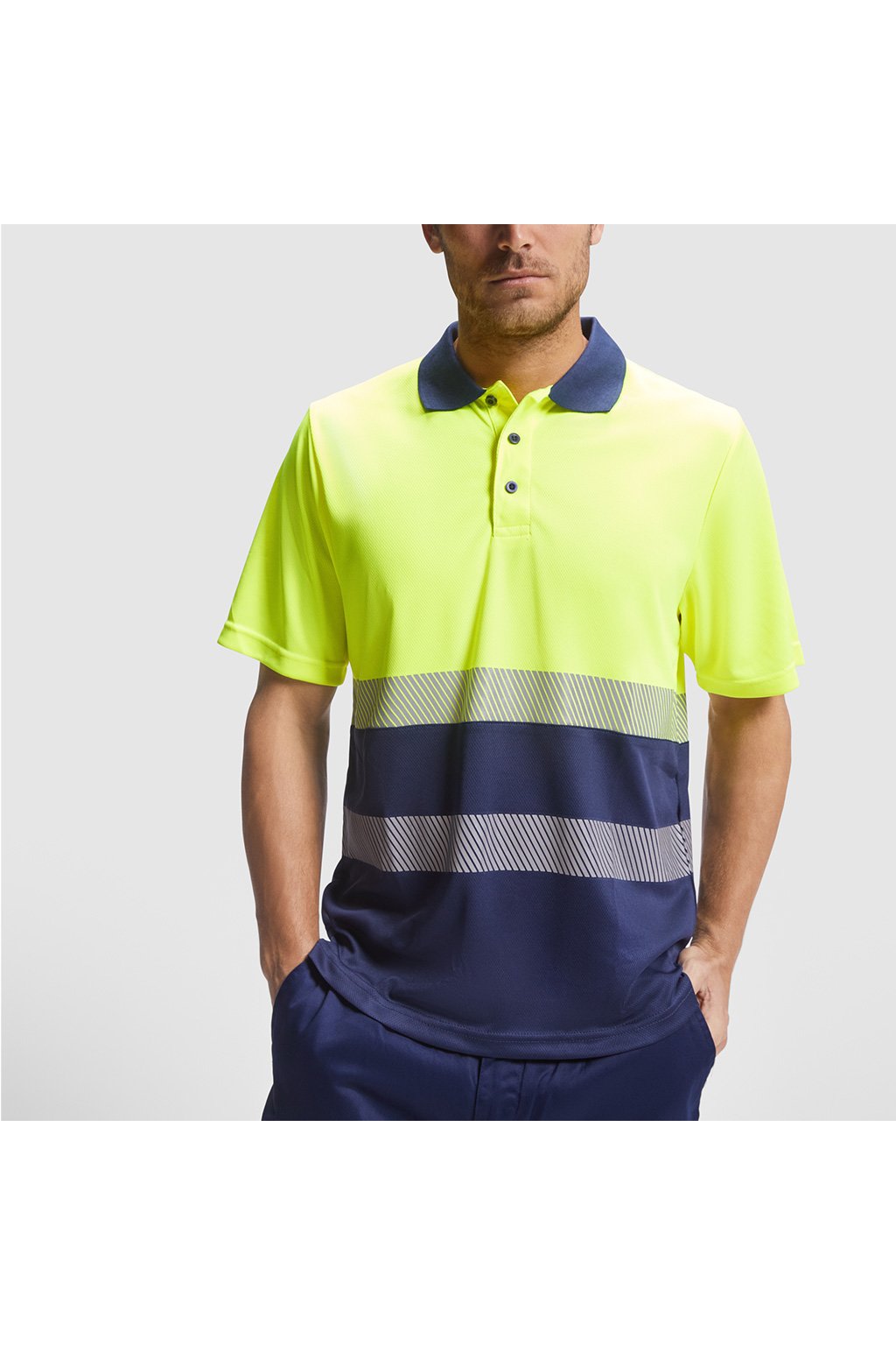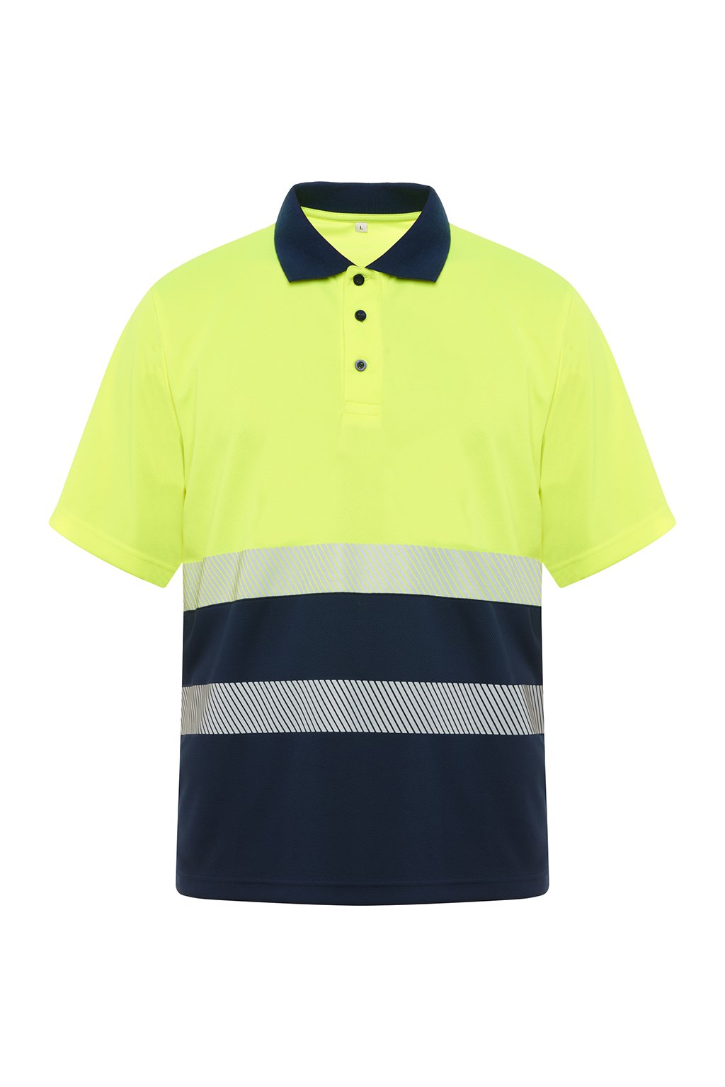 Pánská reflexní polokošile s krátkým rukávem se zapínám na 3 knoflíky. Dva vodorovné reflexní pruhy na hrudi a zádech. Žebrovaná látka límce. Vyrobeno z rychle schnoucí tkaniny. K dispozici je látka na případné přišití kapsy. Certifikace podle norem: EN ISO 13688:2013/A1:2021 a EN ISO 20471:2013/A1:2017. Třída I.