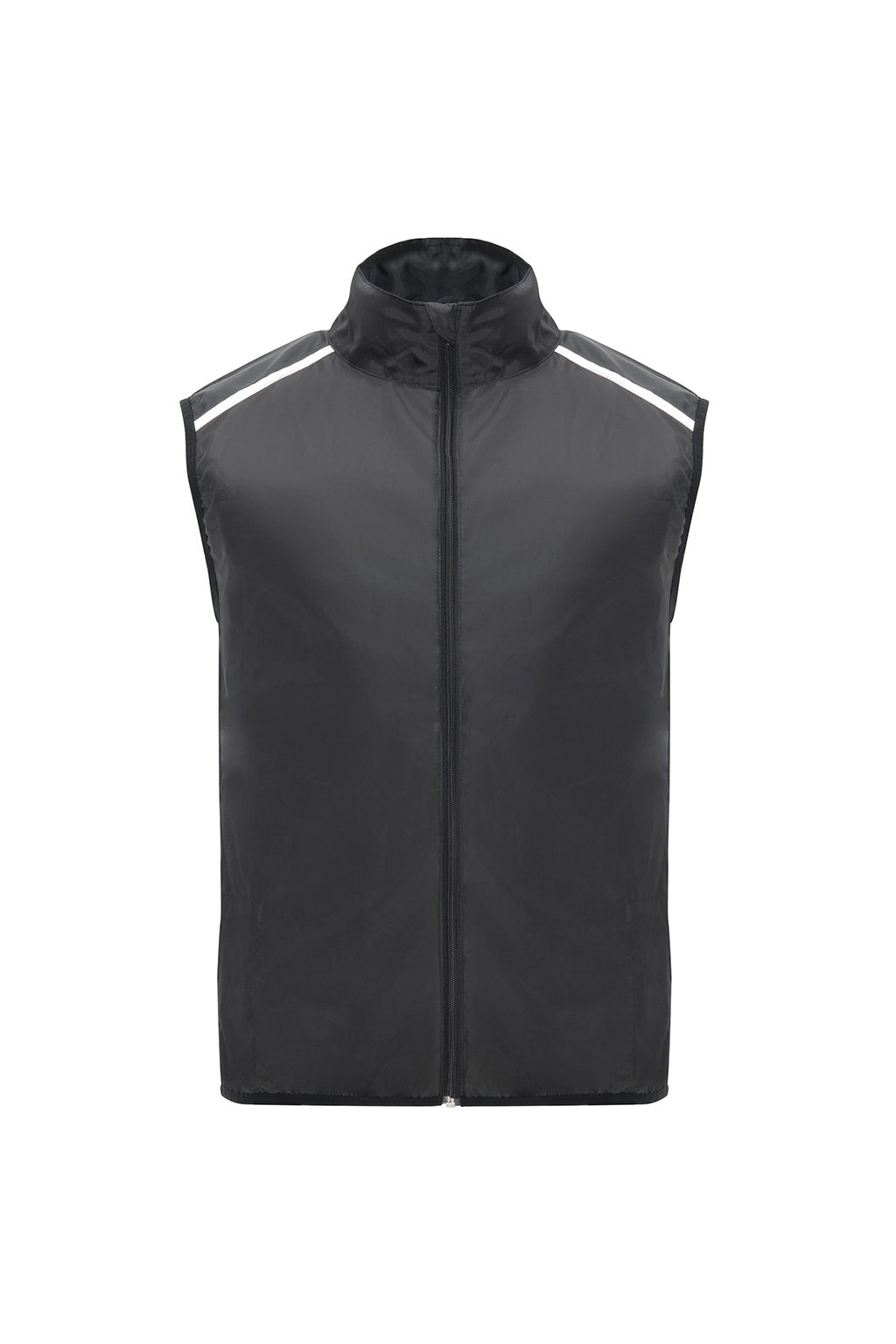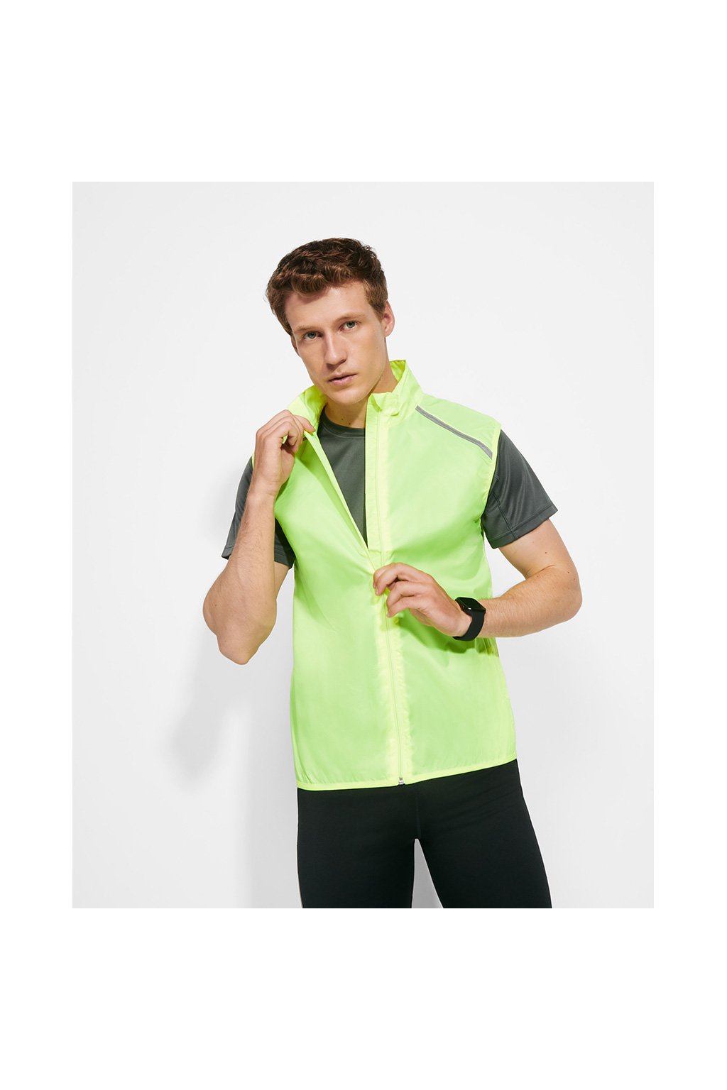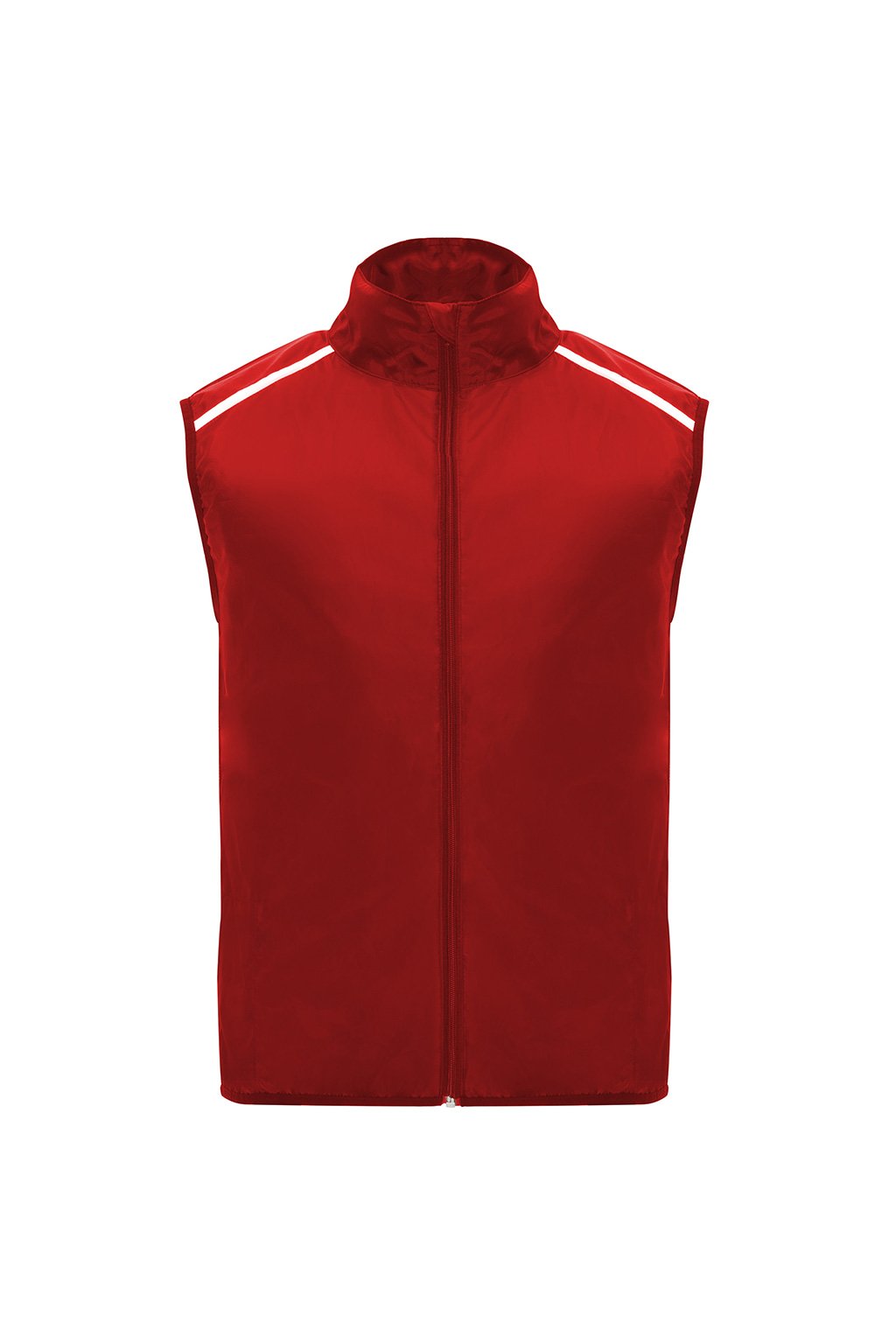 Lehká funkční vesta. Přední zapínání na zip tón v tónu s ochranou brady. Elastické lemování na průramcích a spodním lemu. Spodní lem zadní části z látky s mikro perforací. Reflexní detaily na horní, přední a zadní části. Kapsa s pruženkou na uložení vesty a nošení na zápěstí. Materiál na přední straně: 100% polyester. Materiál na zadní straně: 100% polyester s mikro perforací.