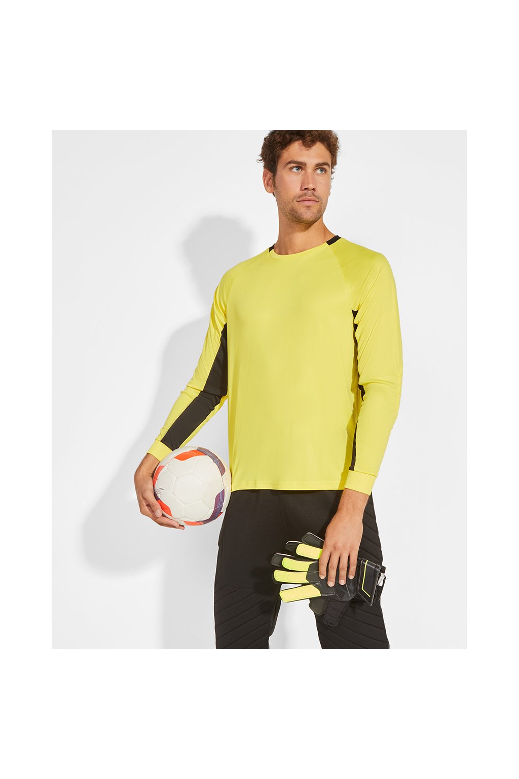 Brankářské tričko s dlouhým rukávem a prošívanými loketními nášivkami. Kontrastní panely na vnitřní straně rukávů. Kontrastní detail na zadní straně výstřihu a manžet. Prodyšný, lehce schnoucí materiál.