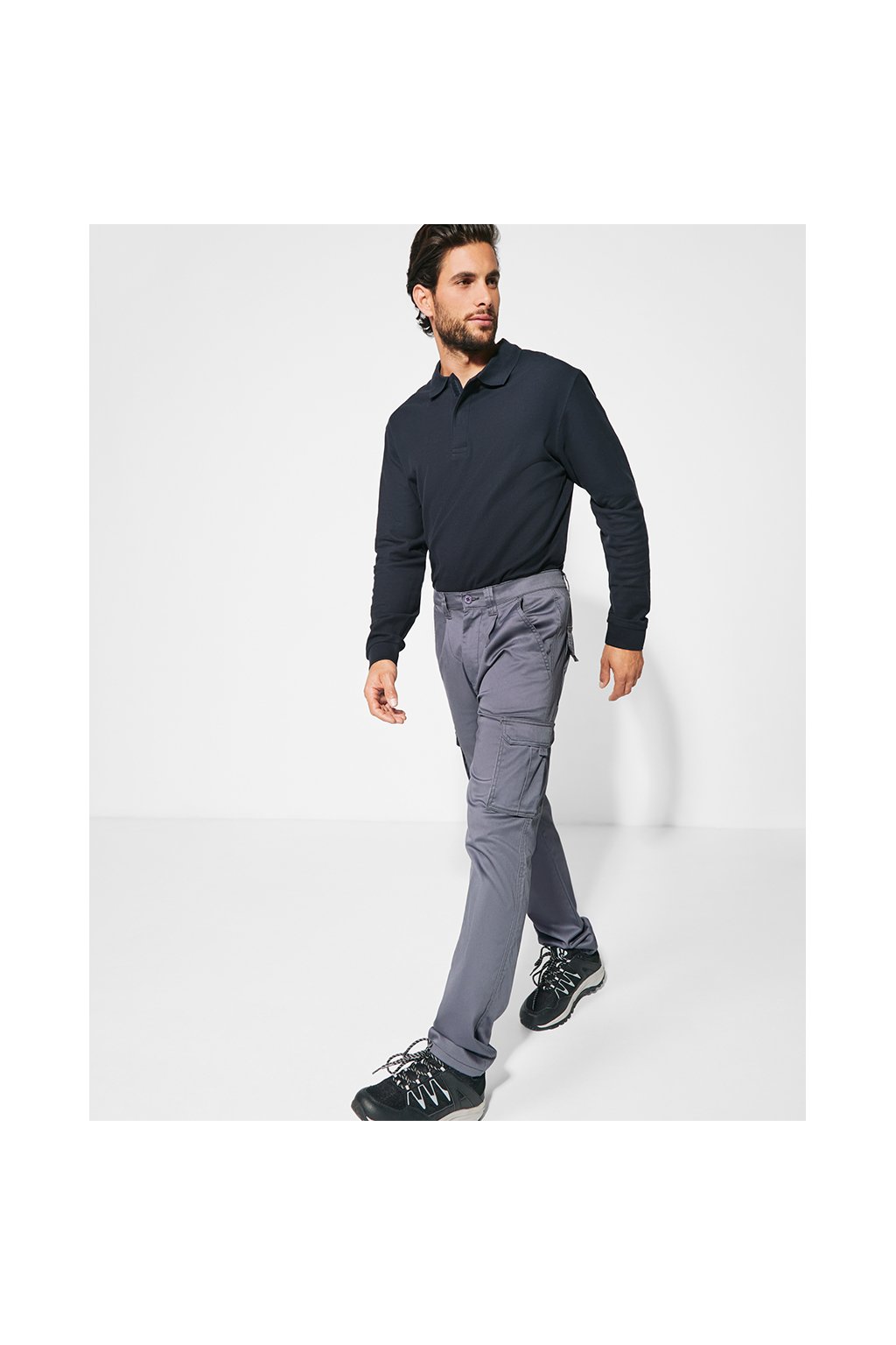 Pracovní dlouhé kalhoty s elastanem pro větší volnost pohybu. Pohodlná a pružná tkanina. Kontrastní šití. Nastavitelný elastický pas v zadní části. Kalhoty, které mají dvě přední kapsy, funkční zadní a boční kapsy s klopou a zapínáním na suchý zip.