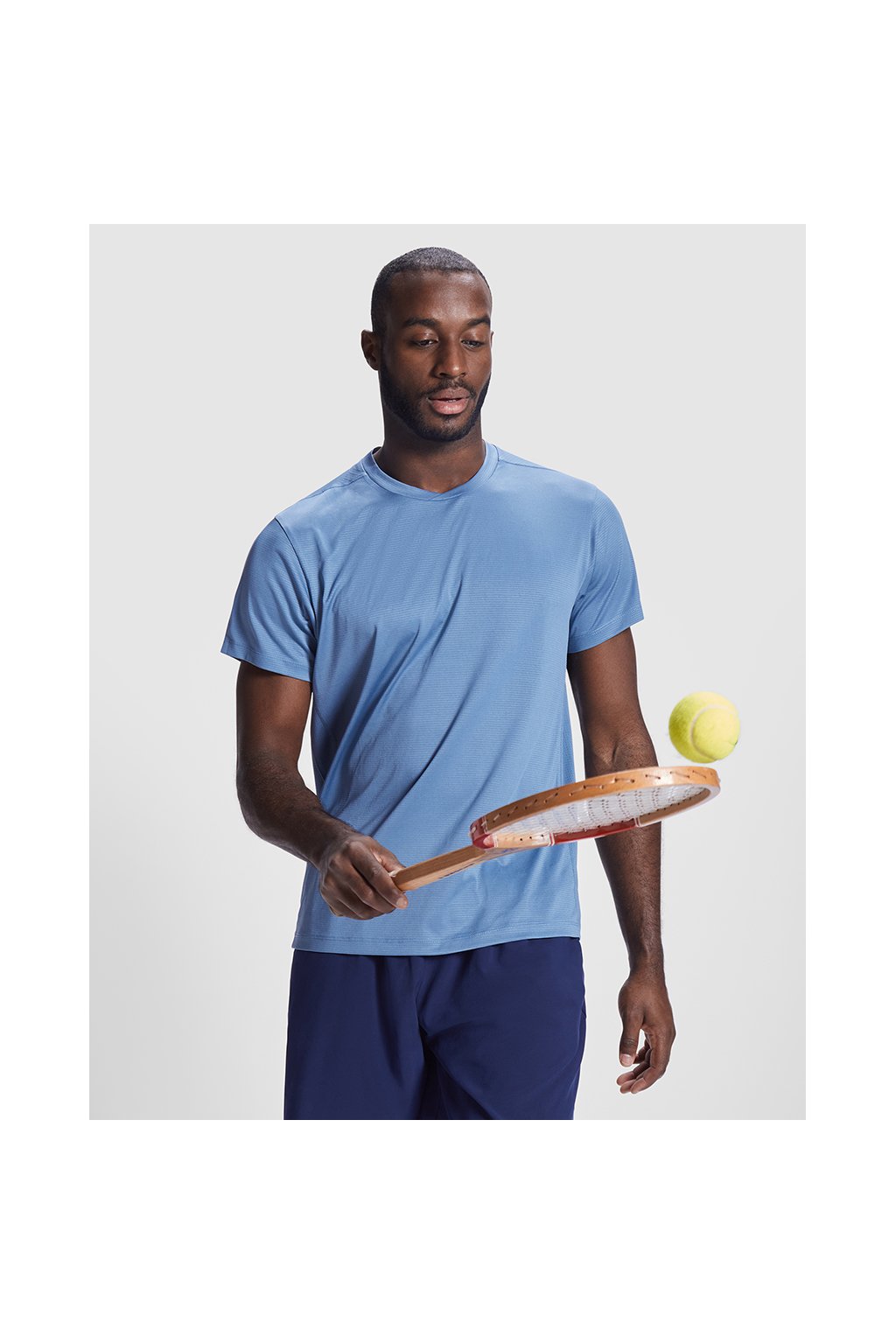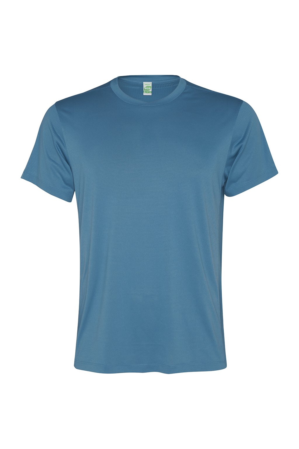 Pánské technické tričko s krátkým rukávem. Lehká tkanina z recyklovaného polyesteru. Límec s křížovými detaily a krycími švy. Ozdobné prošití na zádech a rukávech z prodyšné tkaniny. Švy na bocích a ramenou s melírovým vzorem. Kombinace prodyšné a elastické tkaniny.