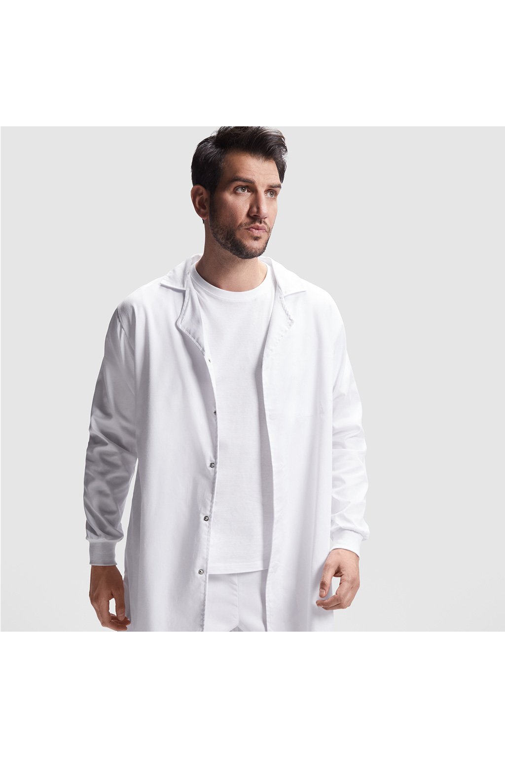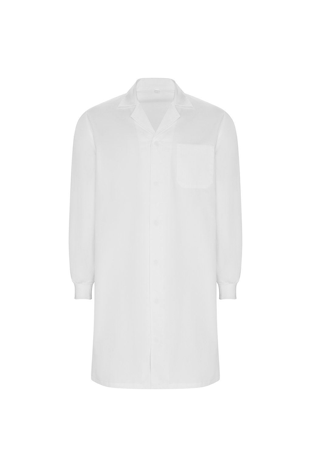 Pracovní unisex plášť Mederi s dlouhým rukávem, který má nastavitelné žebrované manžety 1x1 a vnitřní kapsu na levé straně hrudi. Celorozepínání pomocí vnitřiních knoflíků.
