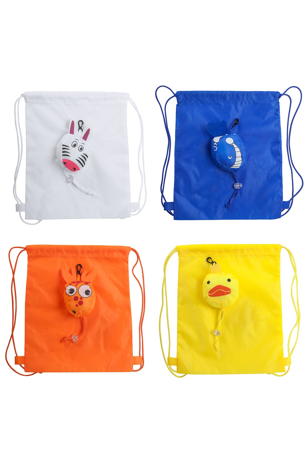 Skládací batůžek se stahovací šňůrkou z polyesteru 190T pro děti. Skládací pytlík s různými zvířecími vzory.