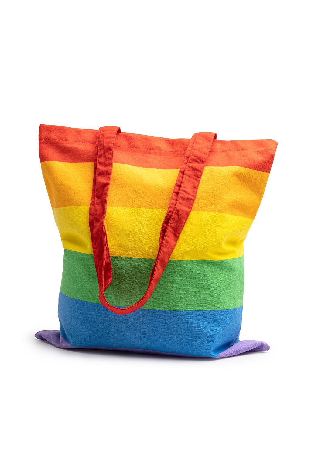 Vícebarevná tote bag ze 100% Fairtrade bavlny (180 g/m²), se zesílenými 70 cm dlouhými uchy.