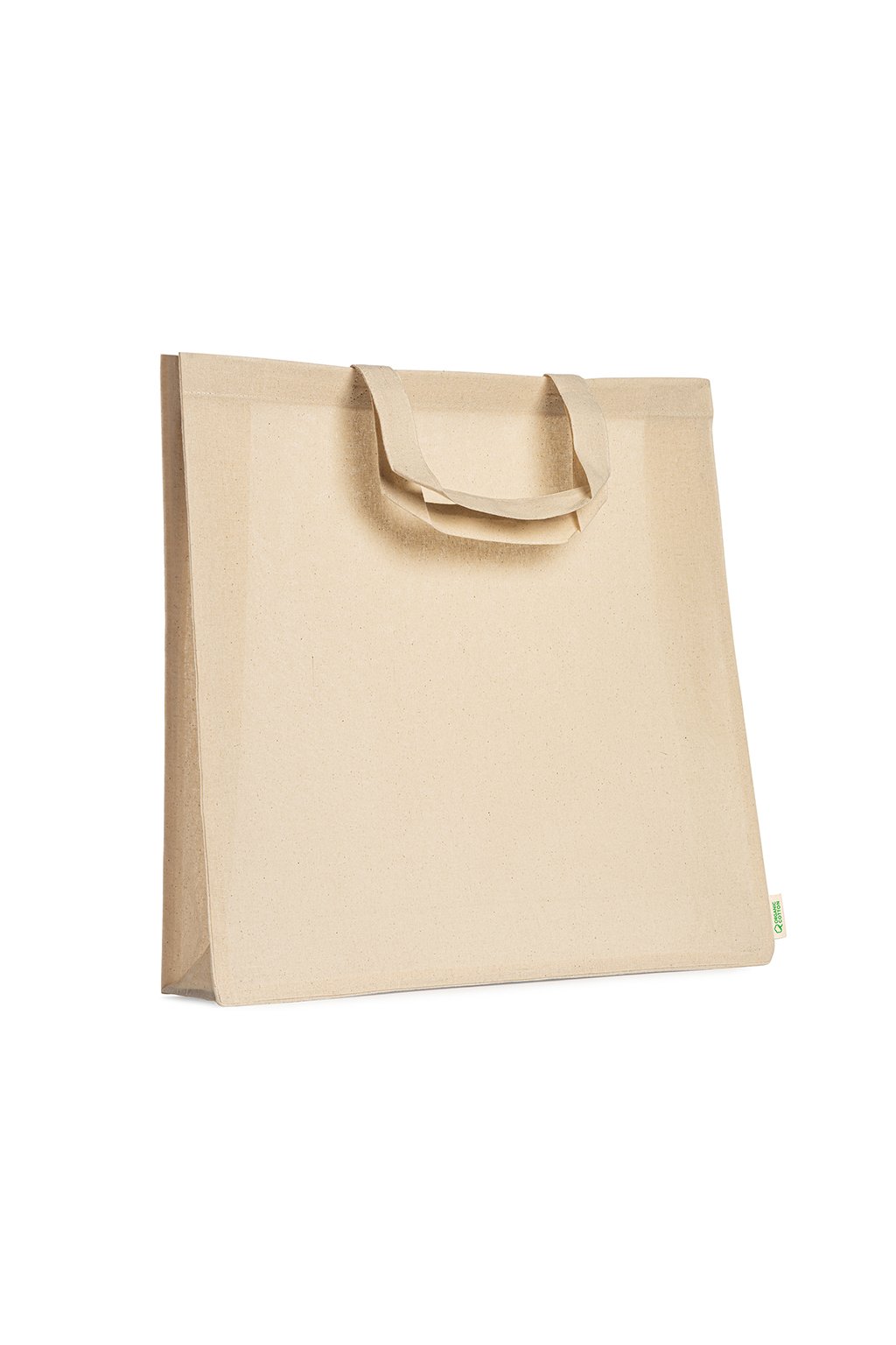 Taška ze 100% organické bavlny s klínem a zesílenými krátkými uchy o délce 35 cm. 120 g/m².