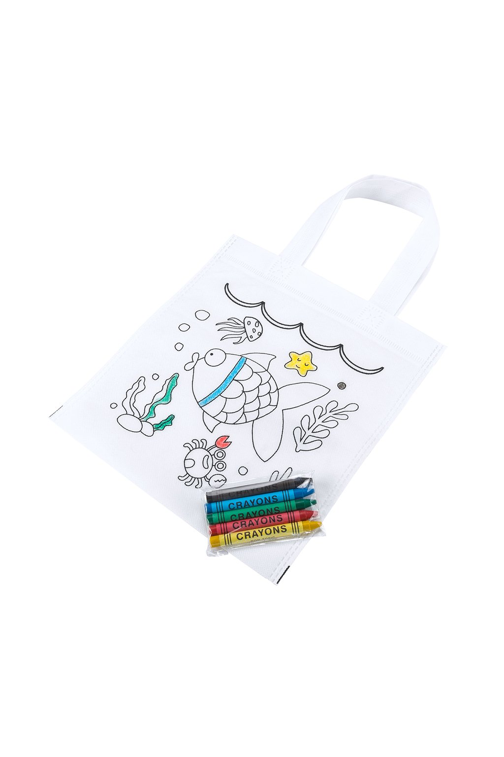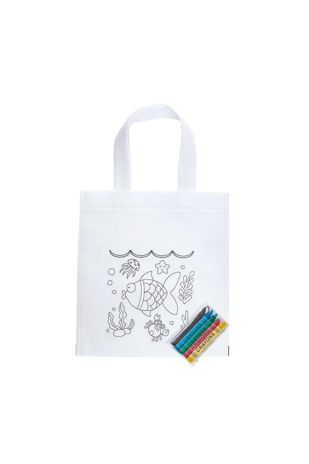 Taška z netkané textilie s designem k vybarvování. Součástí balení je 5 pastelek v různých barvách.
