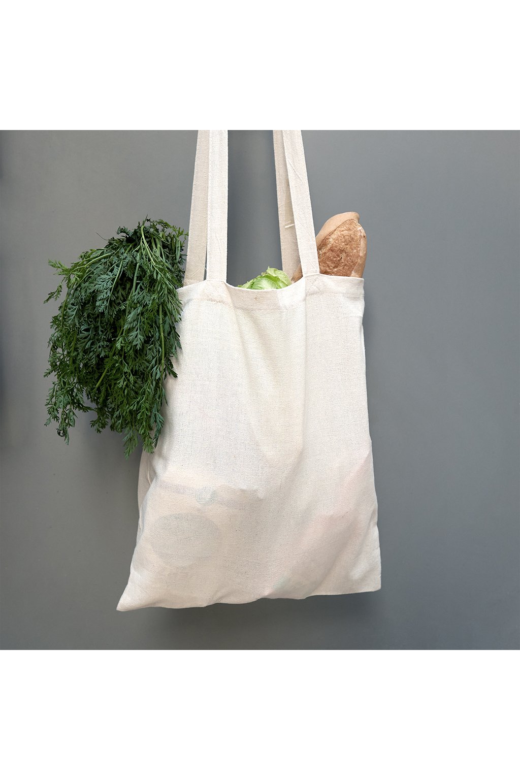 Šitá nákupní taška ze 100% bavlny s praktickými zesílenými uchy o délce 70 cm. 180 g/m².