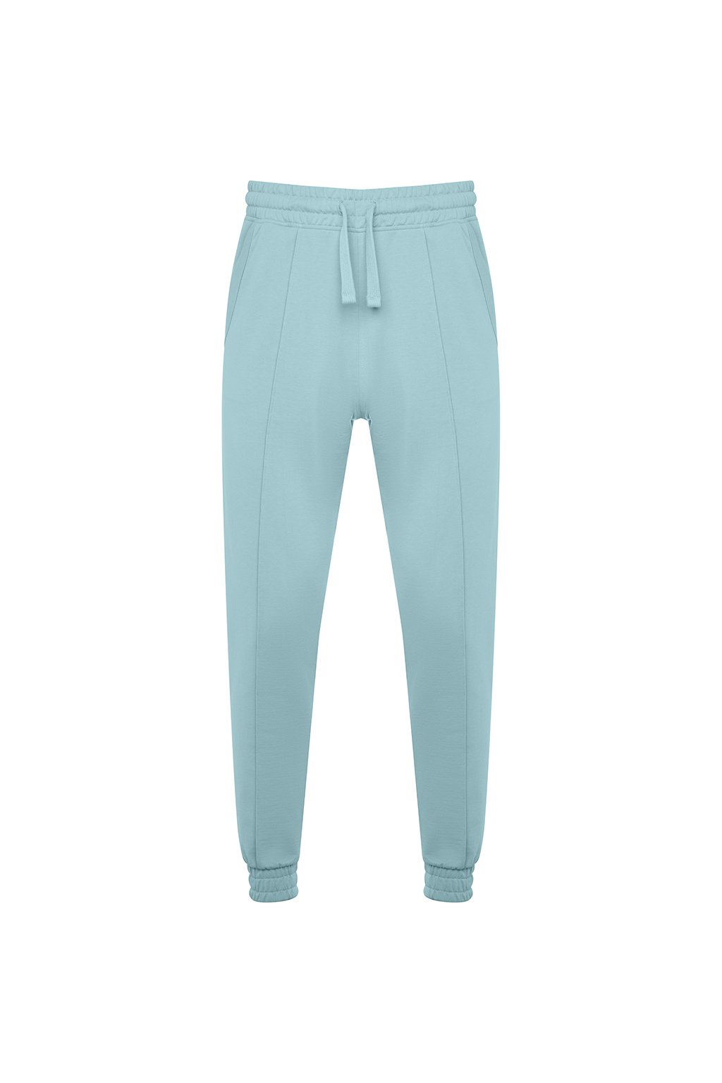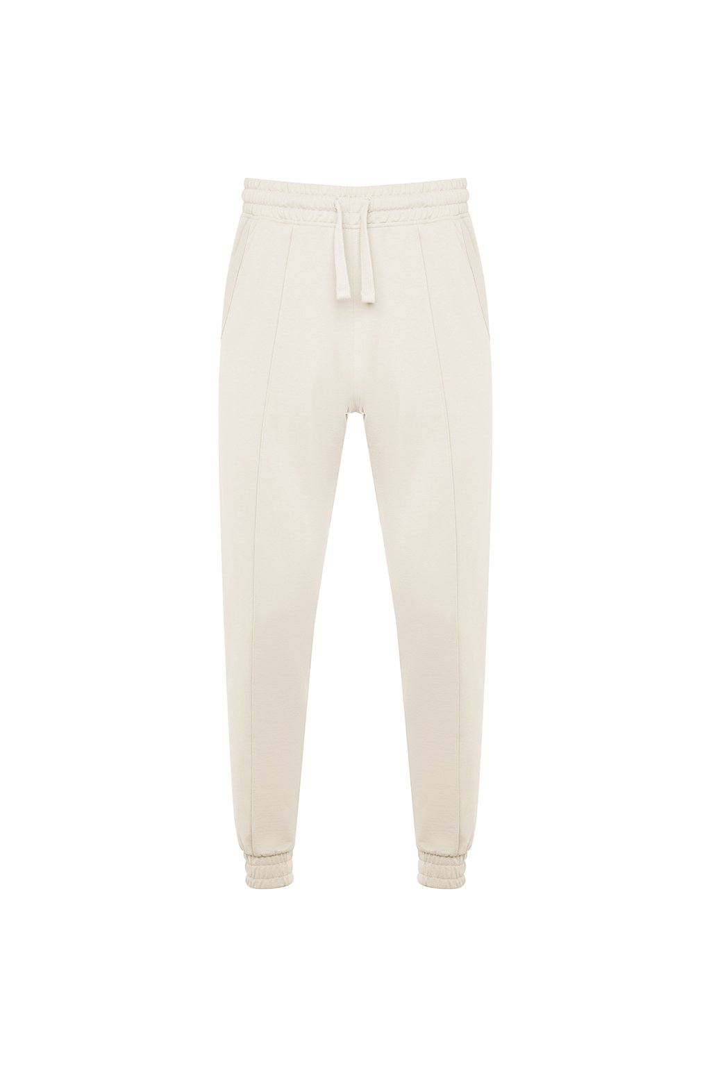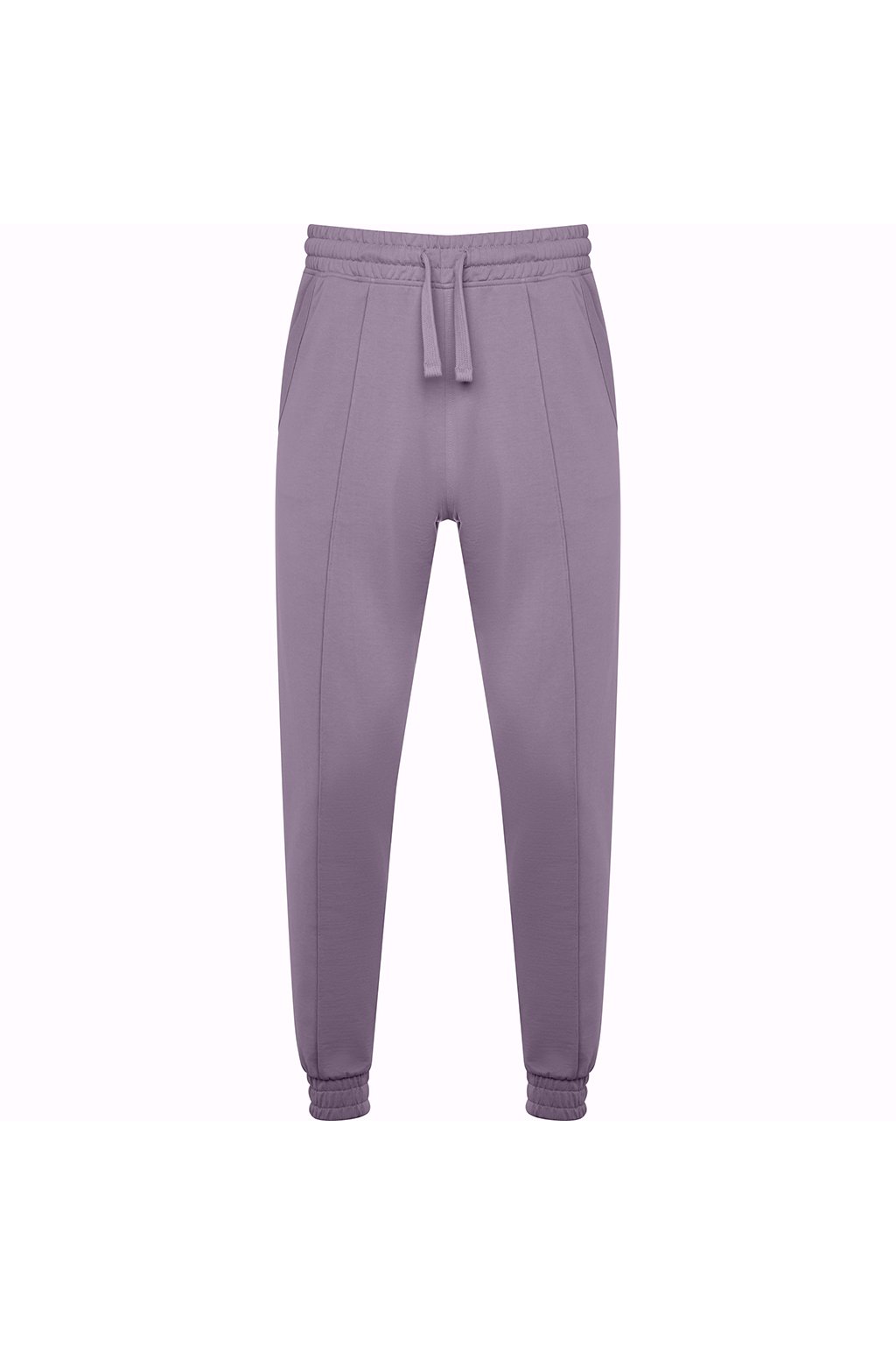 Tepláky rovného střihu s manžetami na nohavicích. Nastavitelný elastický pas pomocí stahovací šňůrky. Dvě kapsy.
