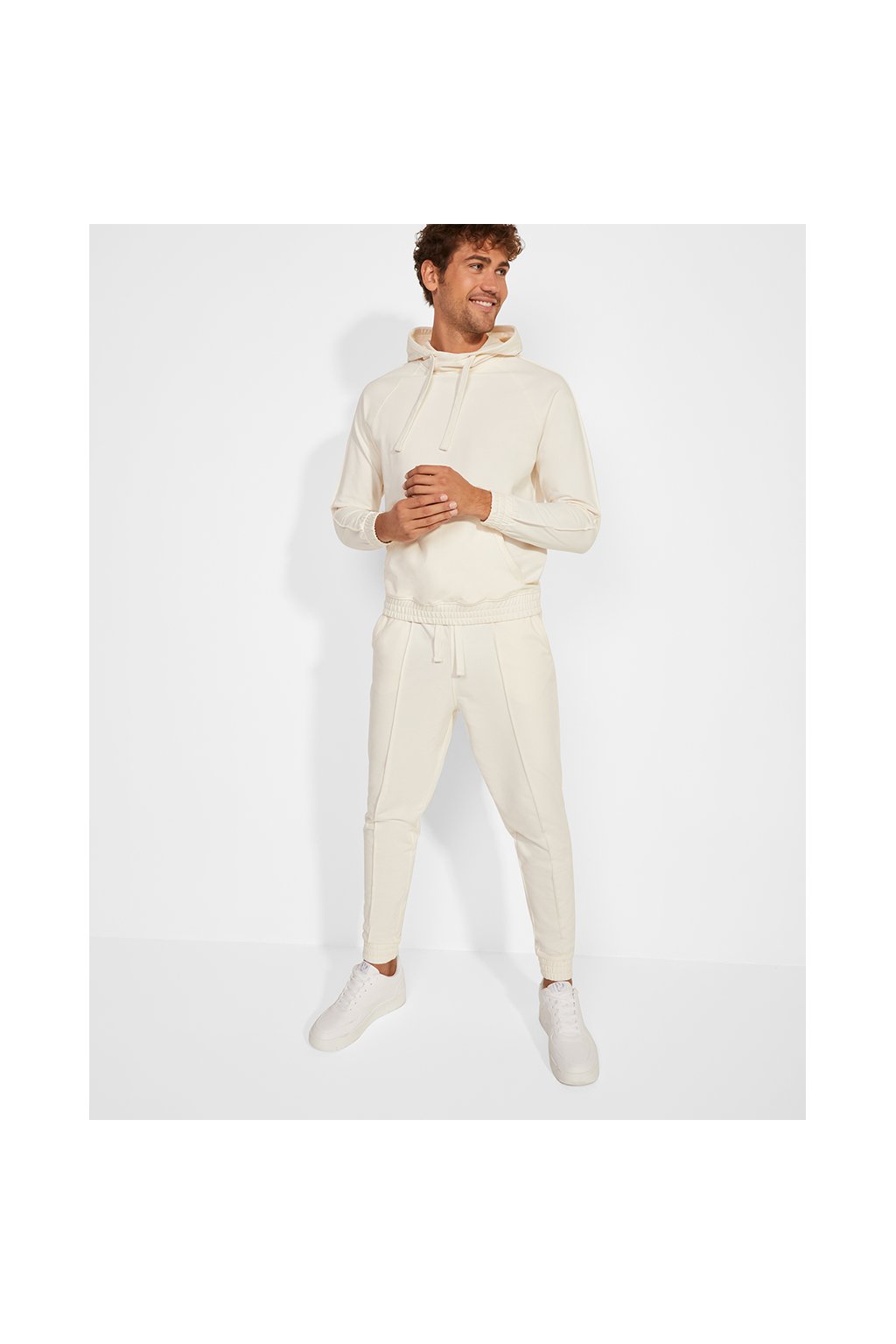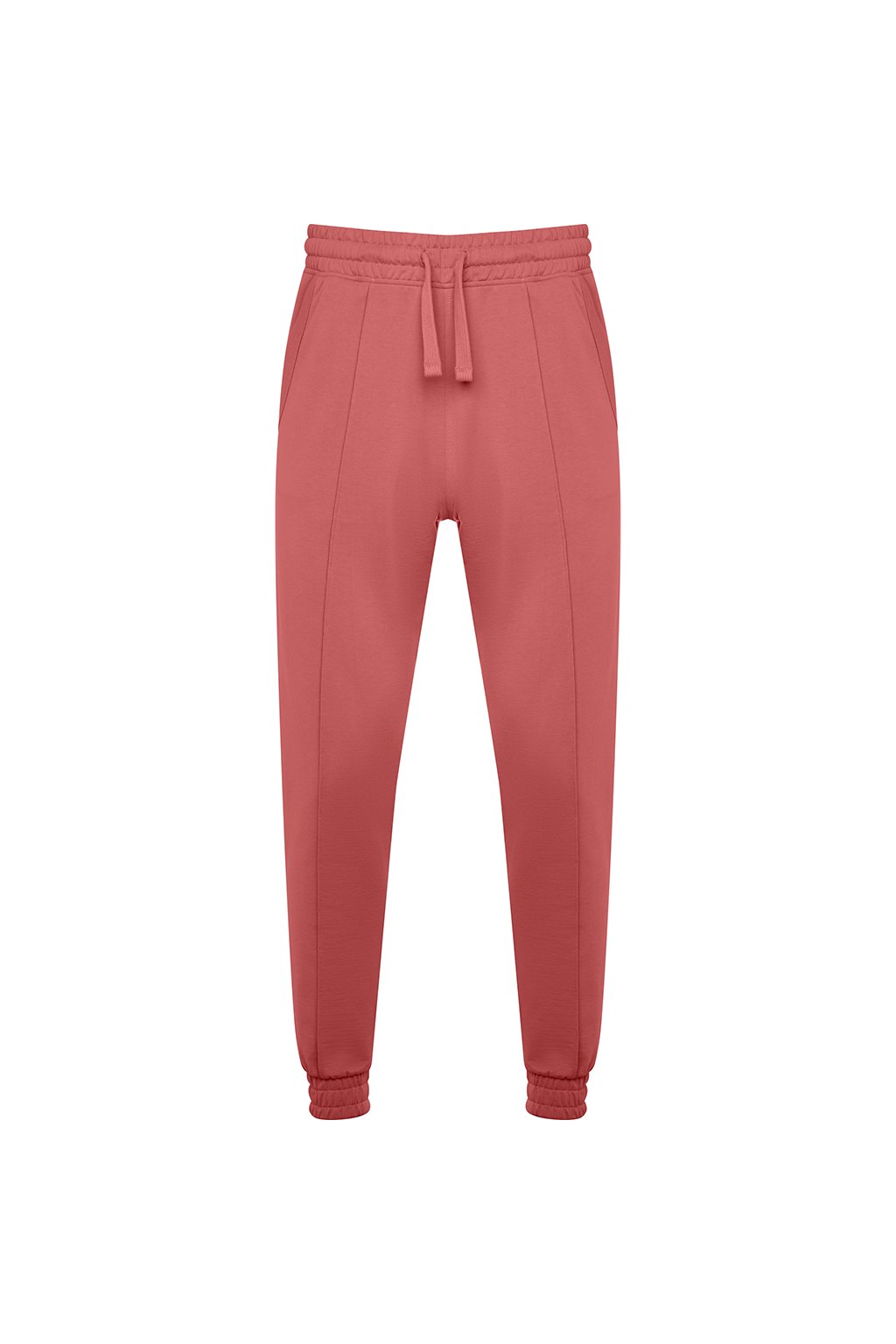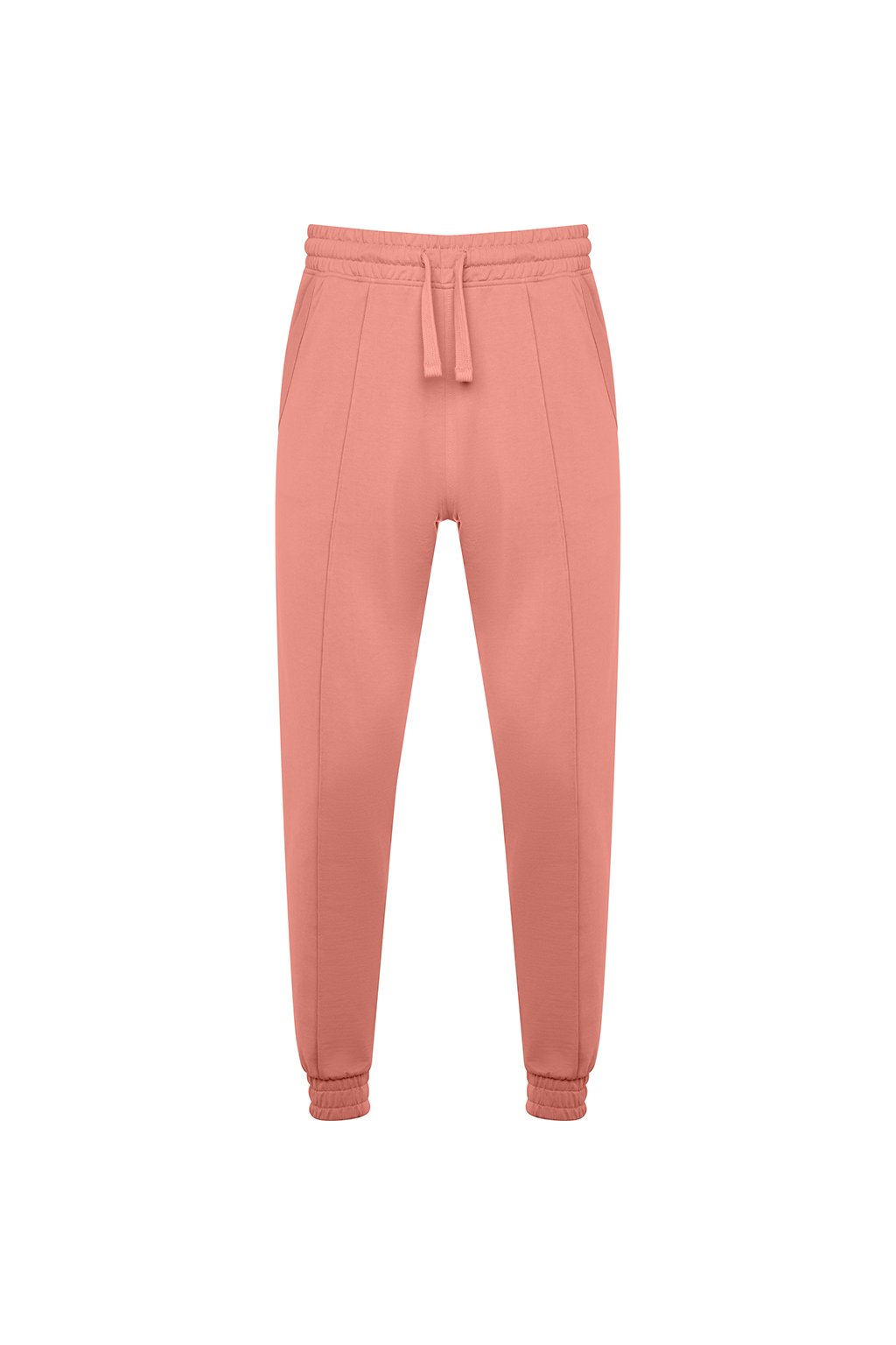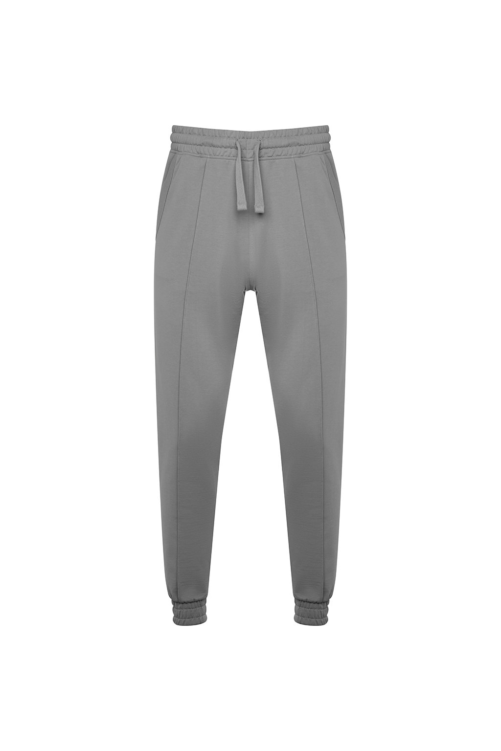 Tepláky rovného střihu s manžetami na nohavicích. Nastavitelný elastický pas pomocí stahovací šňůrky. Dvě kapsy.