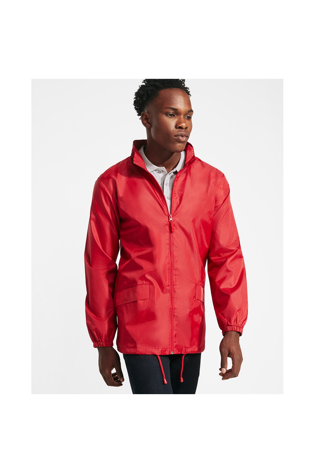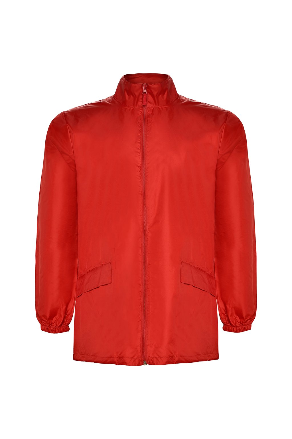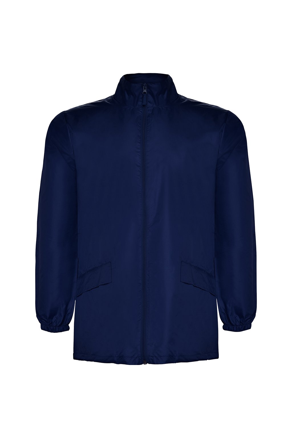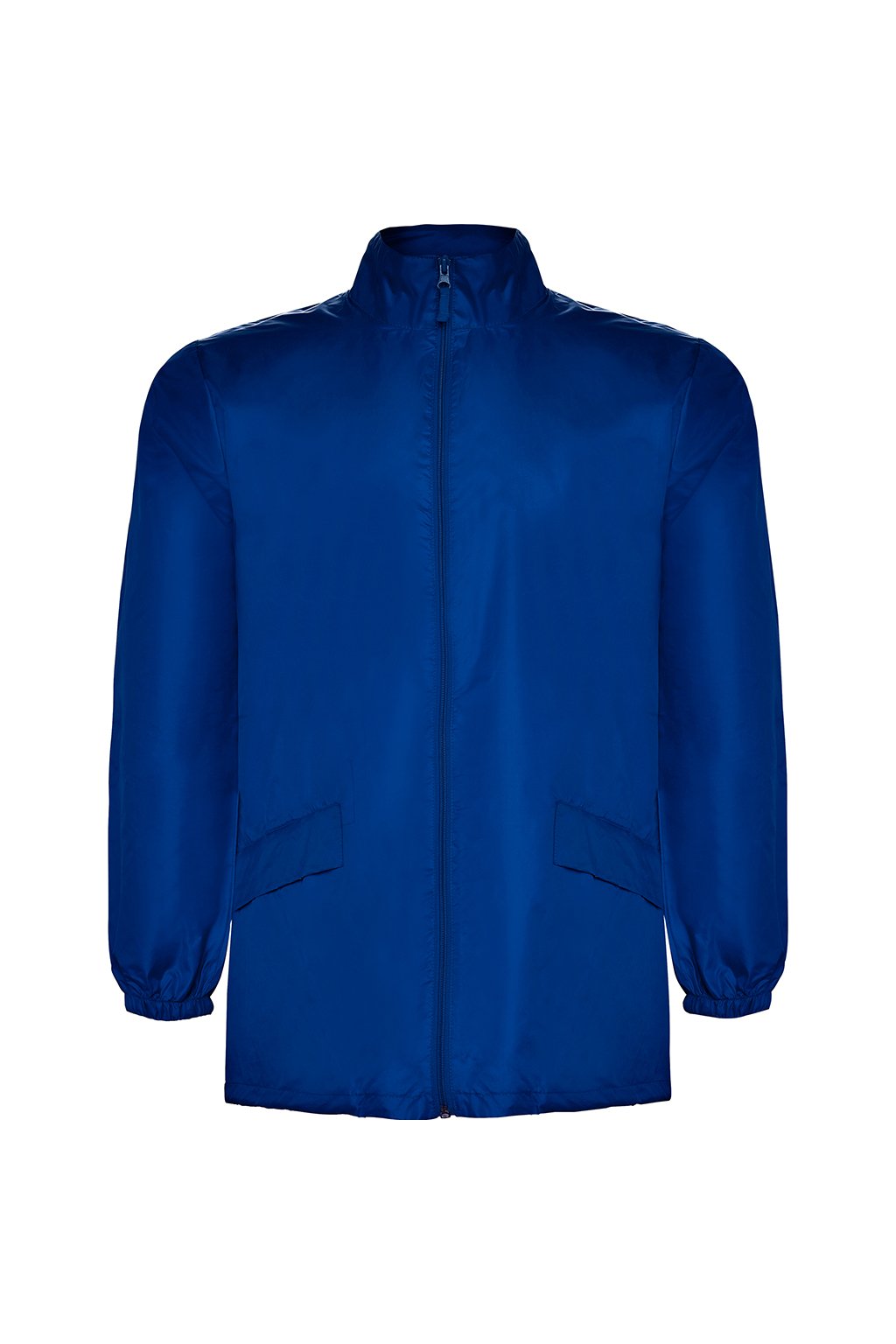 Unisex voděodolná bunda se zipem. Spodní patent nastavitelný pomocí tkaničky, kapuce složitelná do prostoru v límci. Elastické manžety rukávů se suchým zipem.