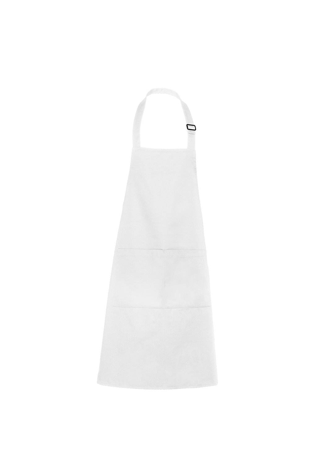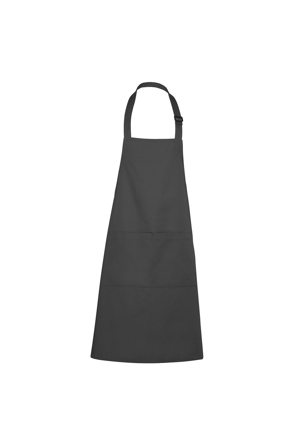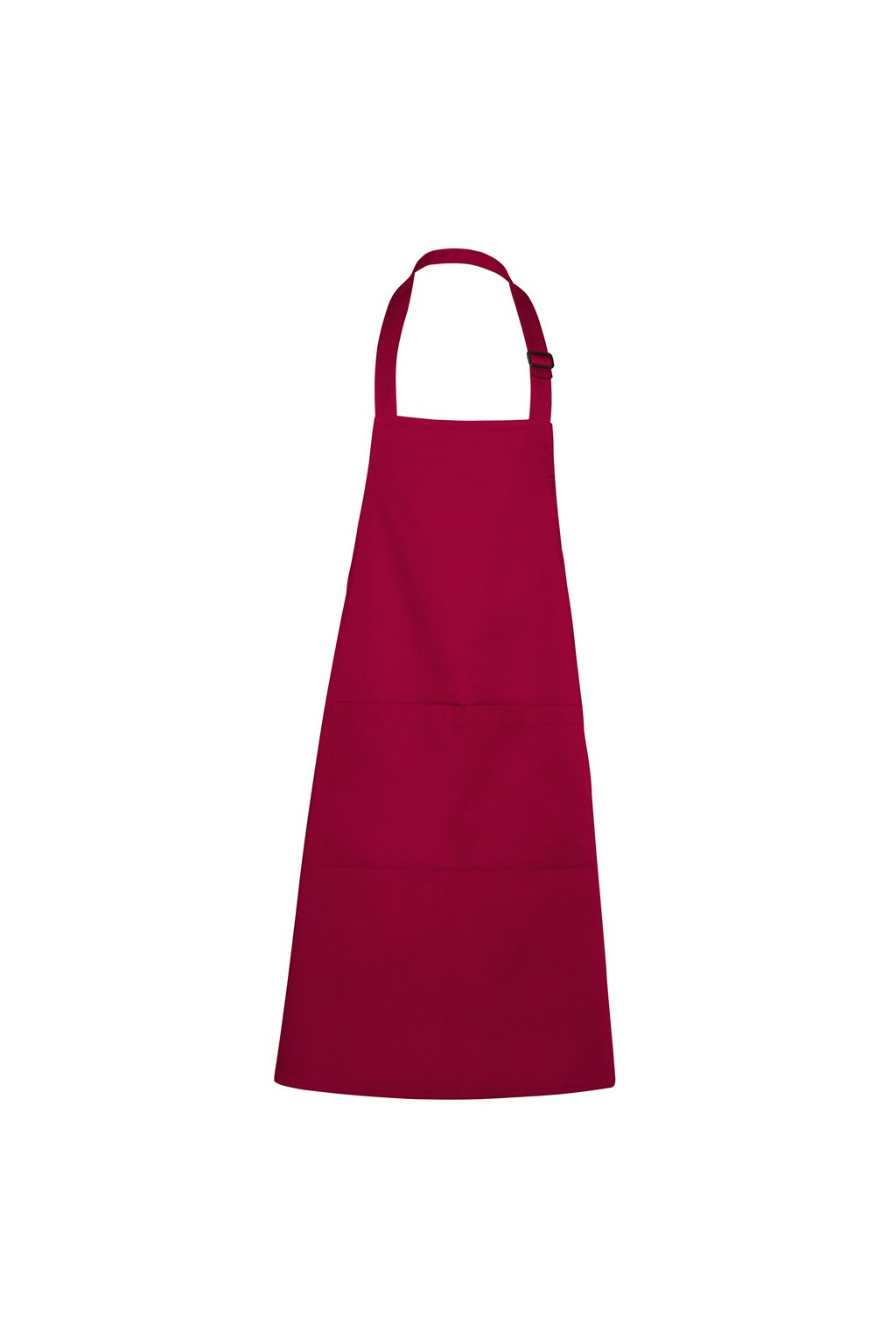 Dlouhá zástěra na vaření s přední kapsou. Délka laclu upravitelná s plastovým uzávěrem. V pase stahovací pásek.